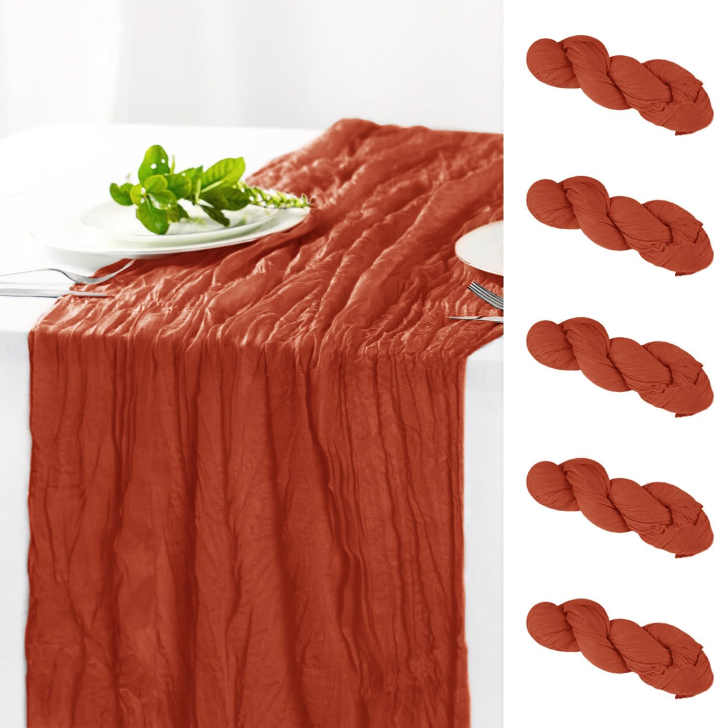 Hahuho Terracotta Cheesecloth Table Runner 10ft, Gauze Boho Rustic Table Runners for Wedding Birthday Party Baby Shower Decorations(6 Pack , 35x120 Inches)