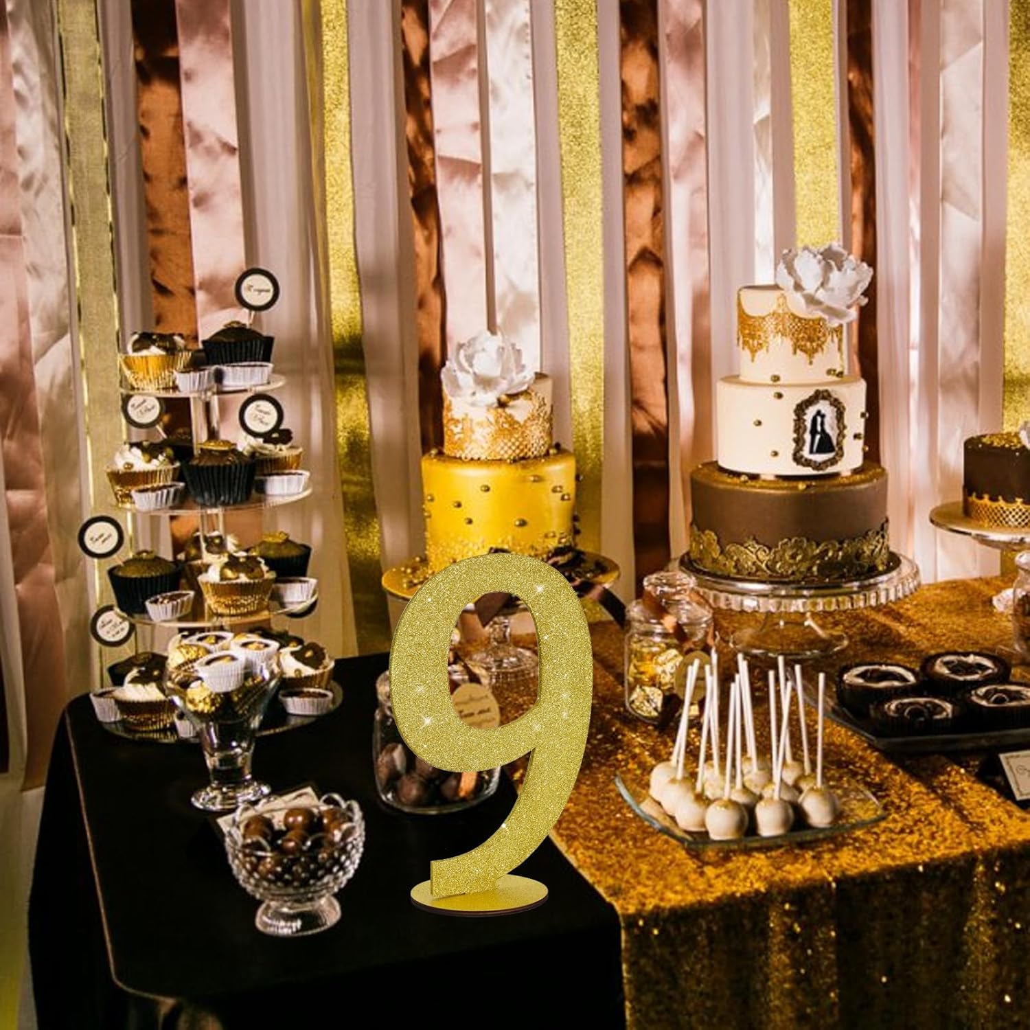 - Good Design: The appearance is adorned with fine golden glitter powder, completely surrounding the "9" wooden ornaments in every direction. When light hits it, it will reflect the light to attract everyone's attention. Makes a great party decoration