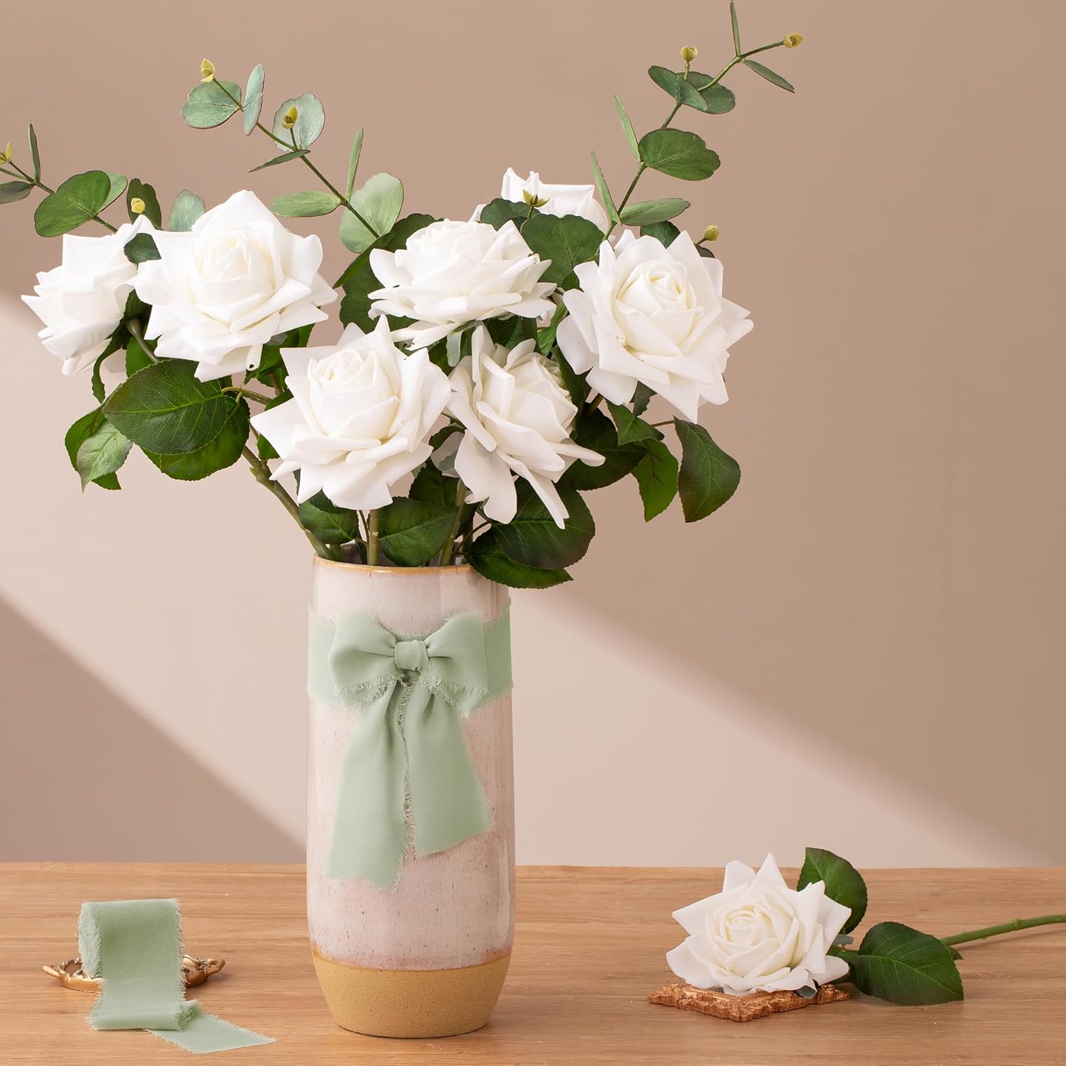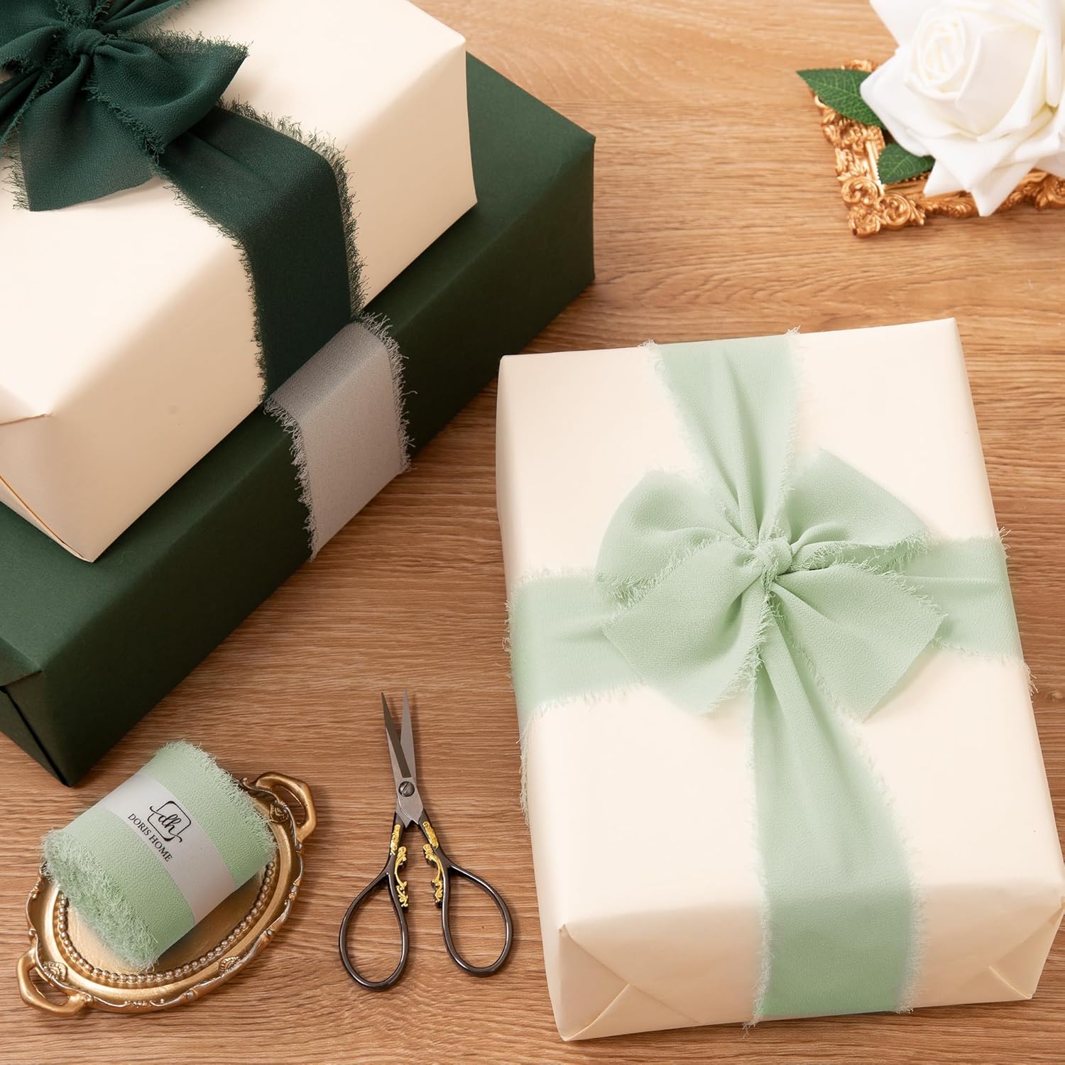 - 【Size and Color】Each roll of chiffon ribbon is 2 inches wide and 7 yards long, perfect for various creative uses such as making bows, decorating wreaths, and DIY crafts. This set includes 3 rolls sage green ribbons. These vibrant frayed ribbons add a rustic charm to your creations, ideal for bouquet wrap or gift ribbon.