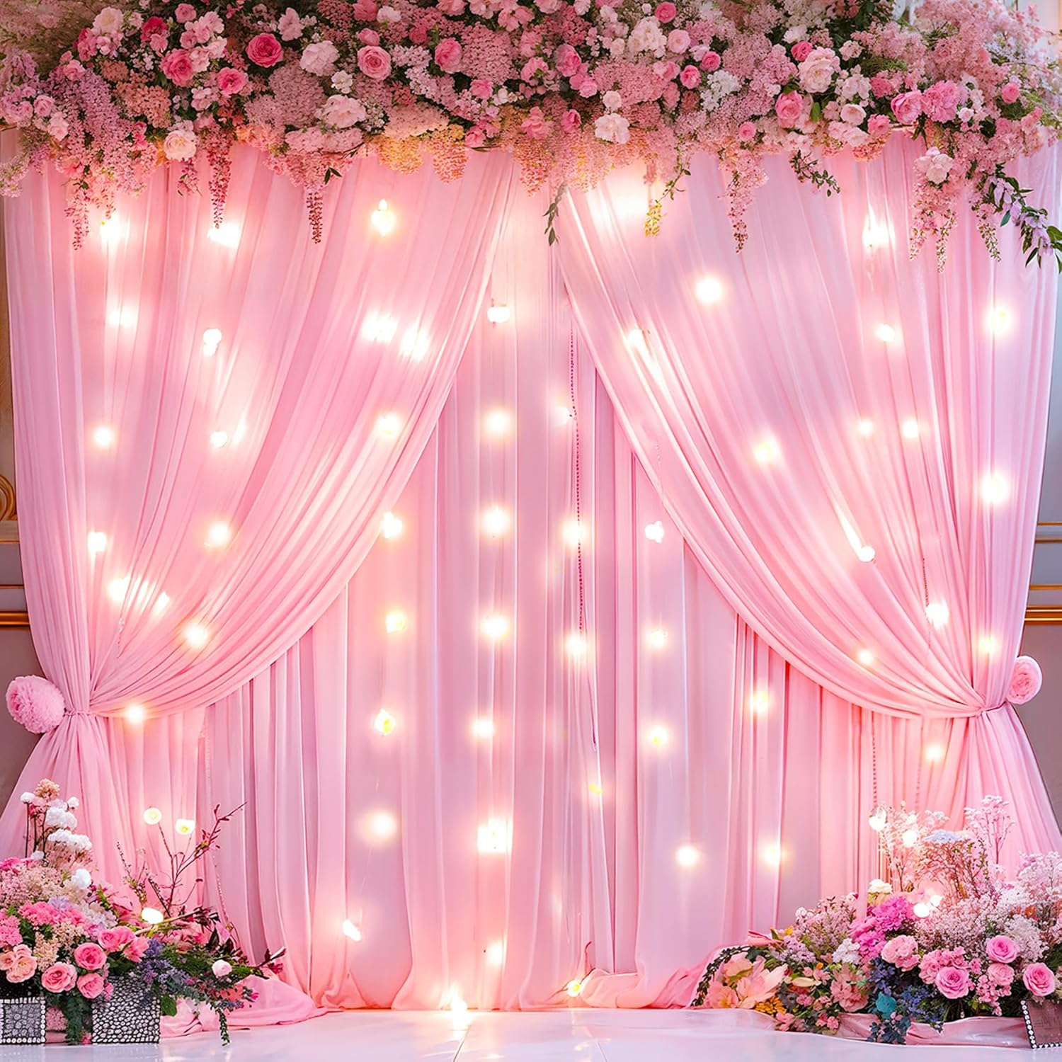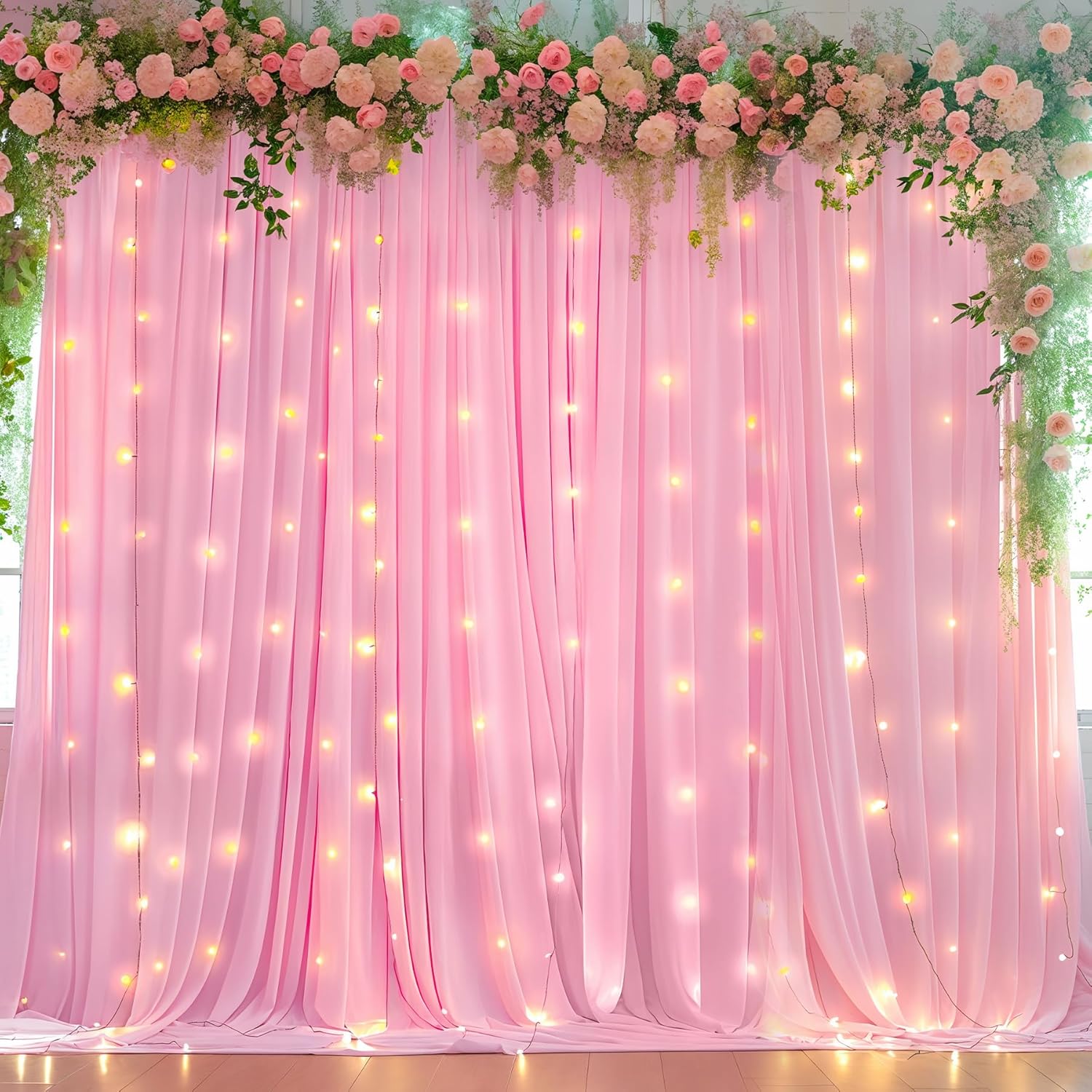 - 【Wedding Backdrop Material】- Our pink curtain lights for backdrop is crafted from premium 100% high-quality polyester fabric which offers a silky smooth texture, and an irresistibly soft touch akin to milk. You can dress it up with a gorgeous background or use lights to create a romantic atmosphere.