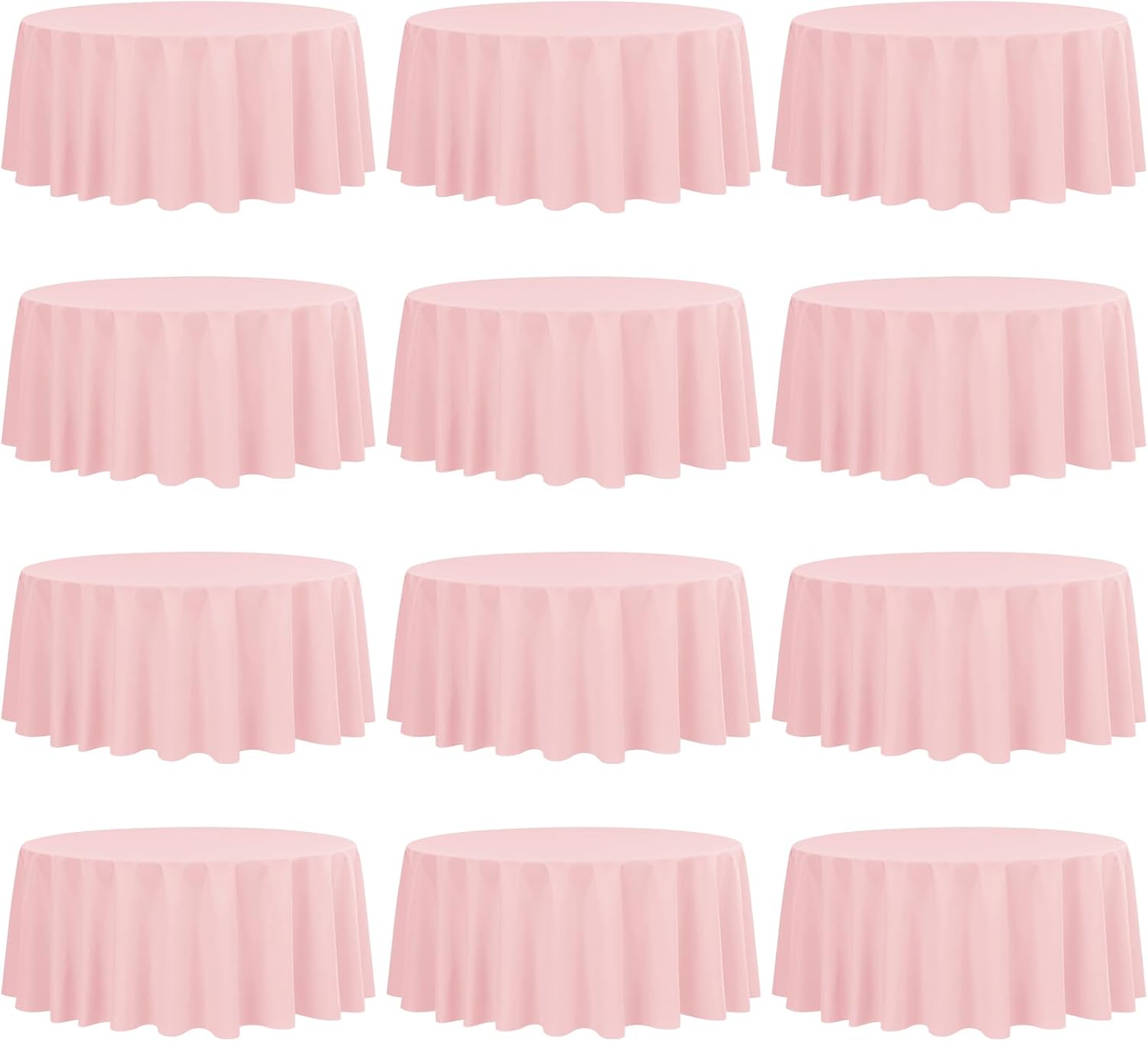 fani 12 Pack 90 Inch Round Tablecloth Pink Polyester Fabric Table Cloth for Round Table,Washable Table Cover for Wedding Party Dining Table Buffet Banquet Restaurant and Camping