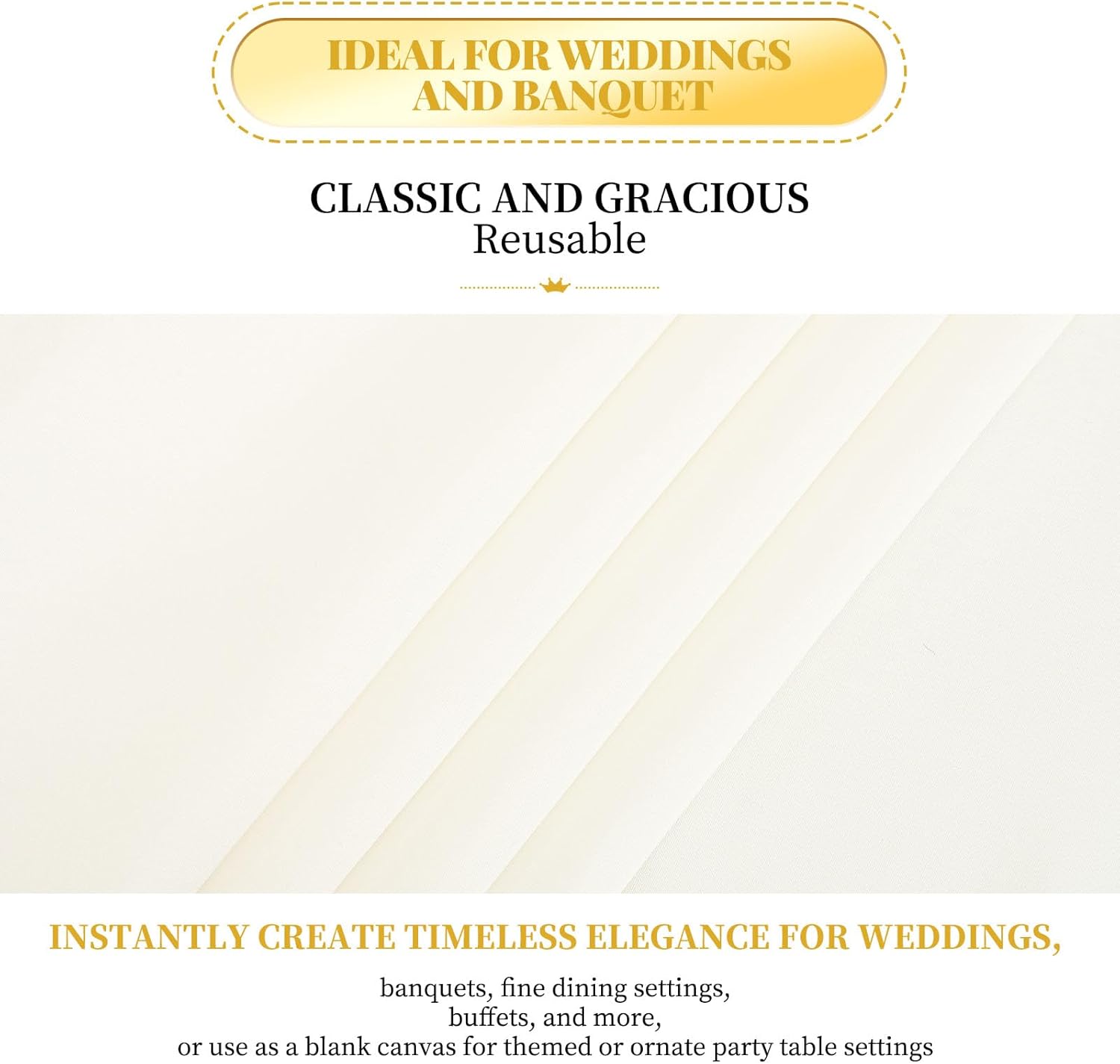 - 🥂【Premium Tablecloth Fabrics】You can get 12 pieces Ivory tablecloth, our tablecloth is made of soft 100% premium polyester fabric,polished look. These materials are as skin-friendly as they are environmentally friendly. Protect and decorate your tables.