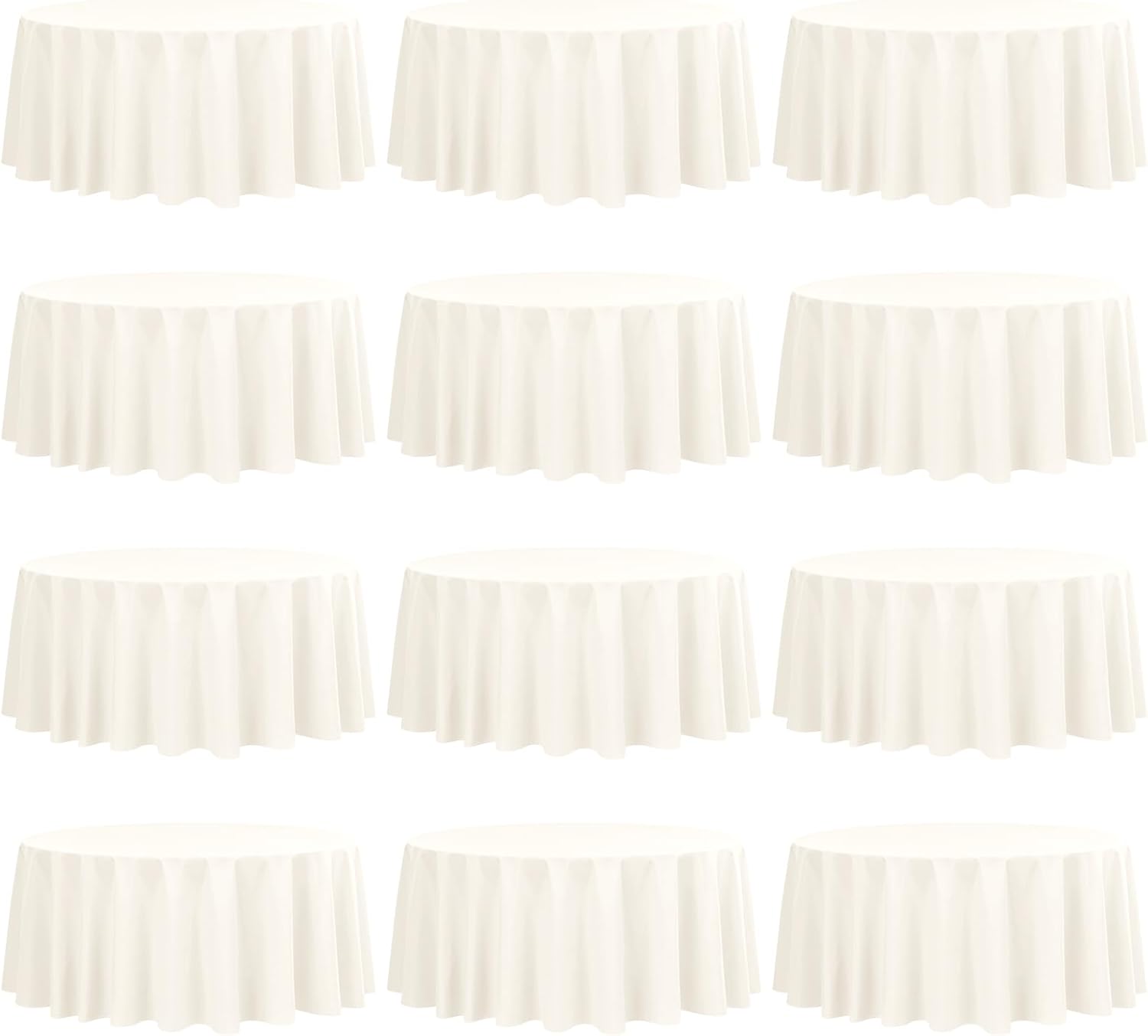 fani 12 Pack 90 Inch Round Tablecloth Ivory Polyester Fabric Table Cloth for Round Table,Washable Table Cover for Wedding Party Dining Table Buffet Banquet Restaurant and Camping