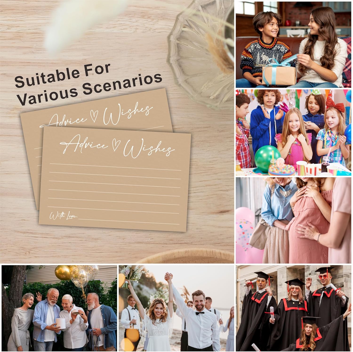 30 Advice And Wishes Cards, Minimalism Brown Wishes Cards For Wedding, Bridal Shower, Advice And Wishes For The Mr And Mrs, Baby Shower, Graduation, Retirement, Anniversary, Party Favor & Supplies-A02