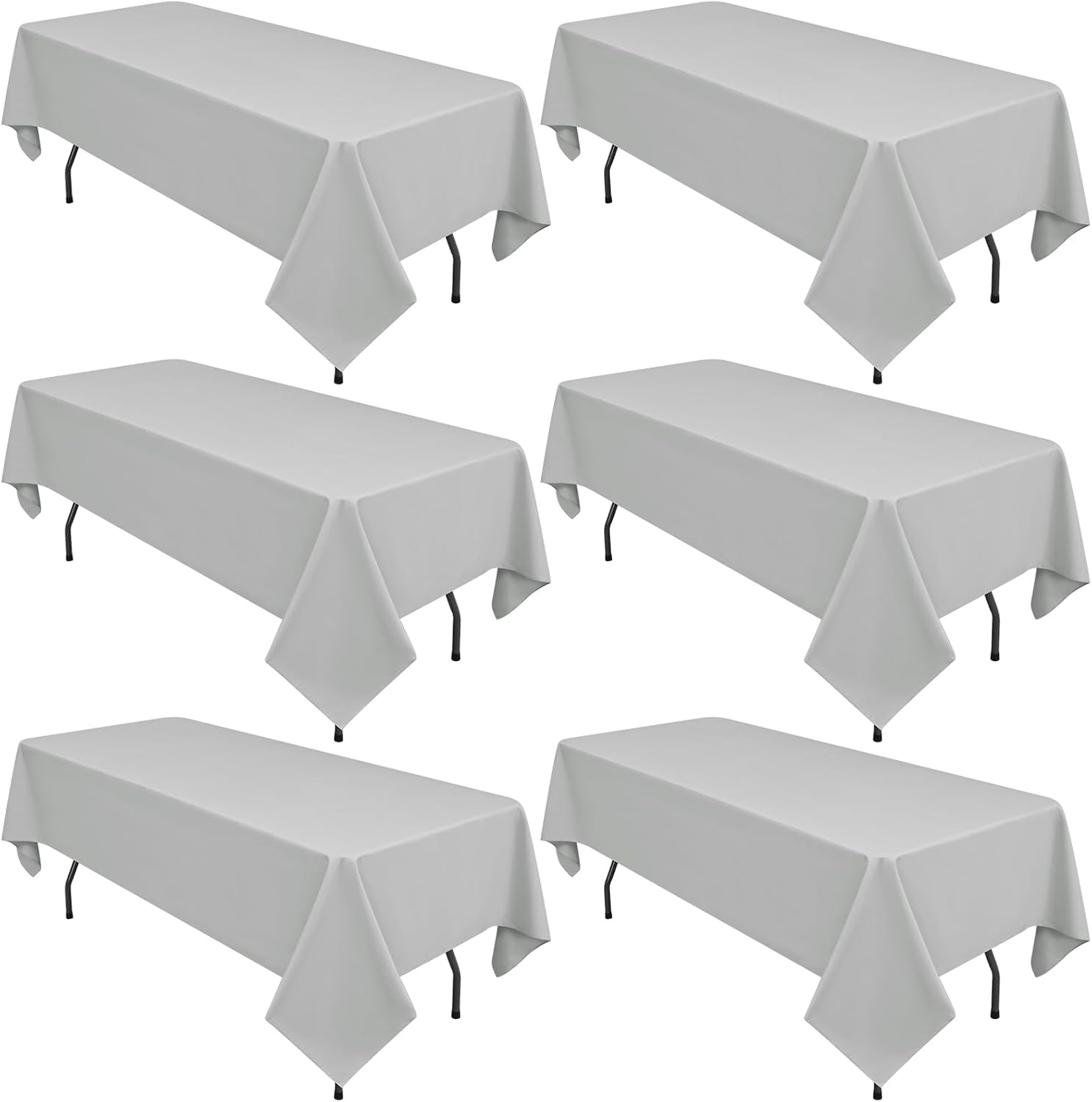 6 Pack Light Grey Rectangular Tablecloths, 60 x 126 Inch, Polyester/Fabric, Wrinkle & Stain Resistant, Classic Style, Perfect for 8ft Tables, Weddings, Banquets, Parties