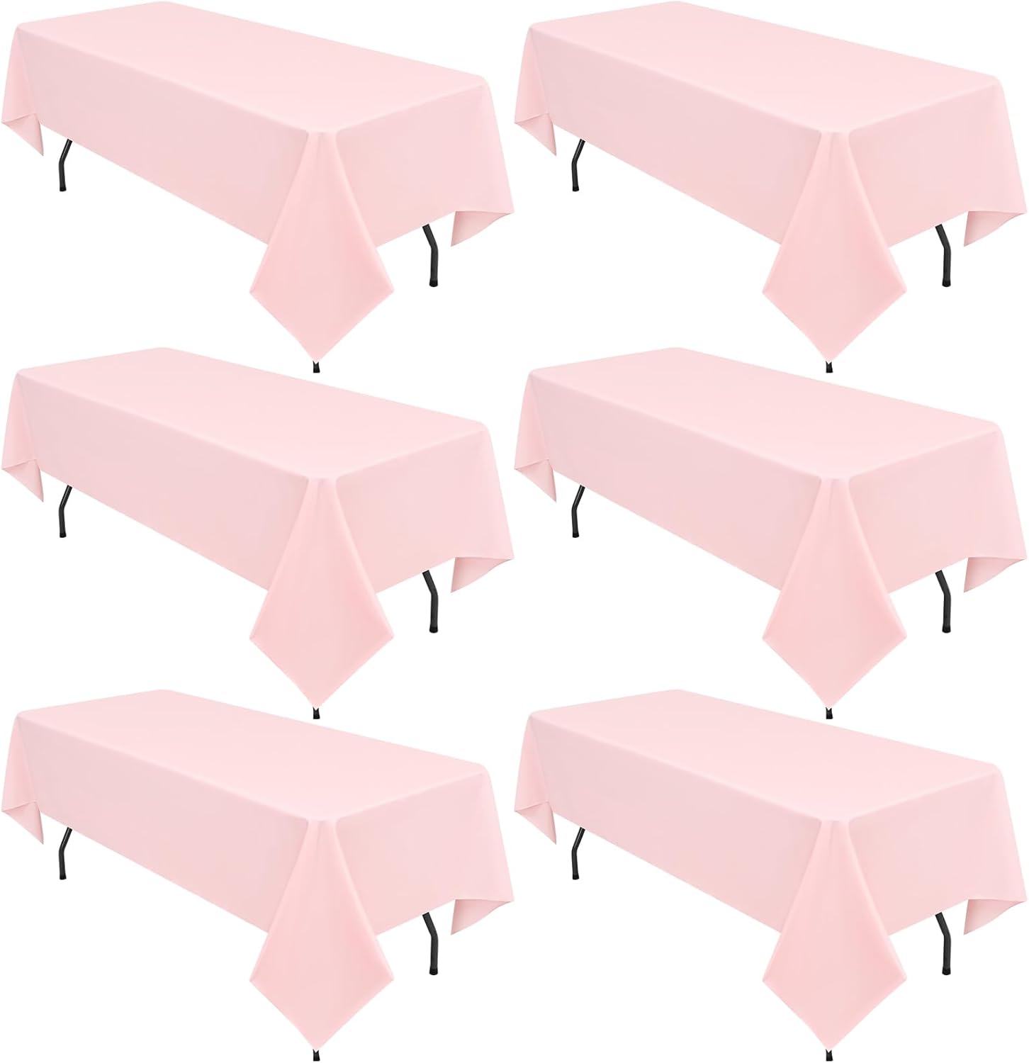 6 Pack Pink Tablecloths for 8ft Rectangle Tables 60 x 126 Inch - Polyester Table Cover Stain and Wrinkle Resistant Washable Fabric Table Clothes for Wedding Party Banquet Reception Restaurant