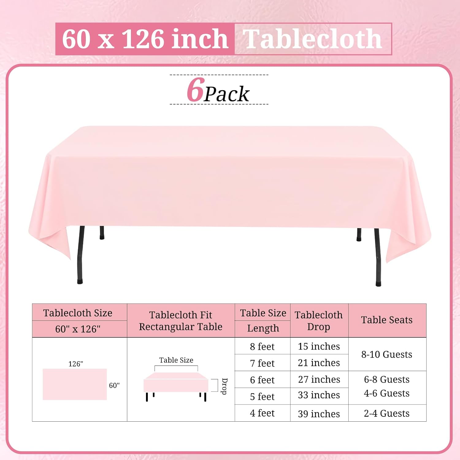 - 【Superior Tablecloth Material】: You will get 6 pack pink tablecloth, this durable and easy to clean tablecloth is made from premium polyester fabric that resists wrinkling for an always crisp, polished look. Providing more convenience for your using and cleaning. Durable for repeat use.