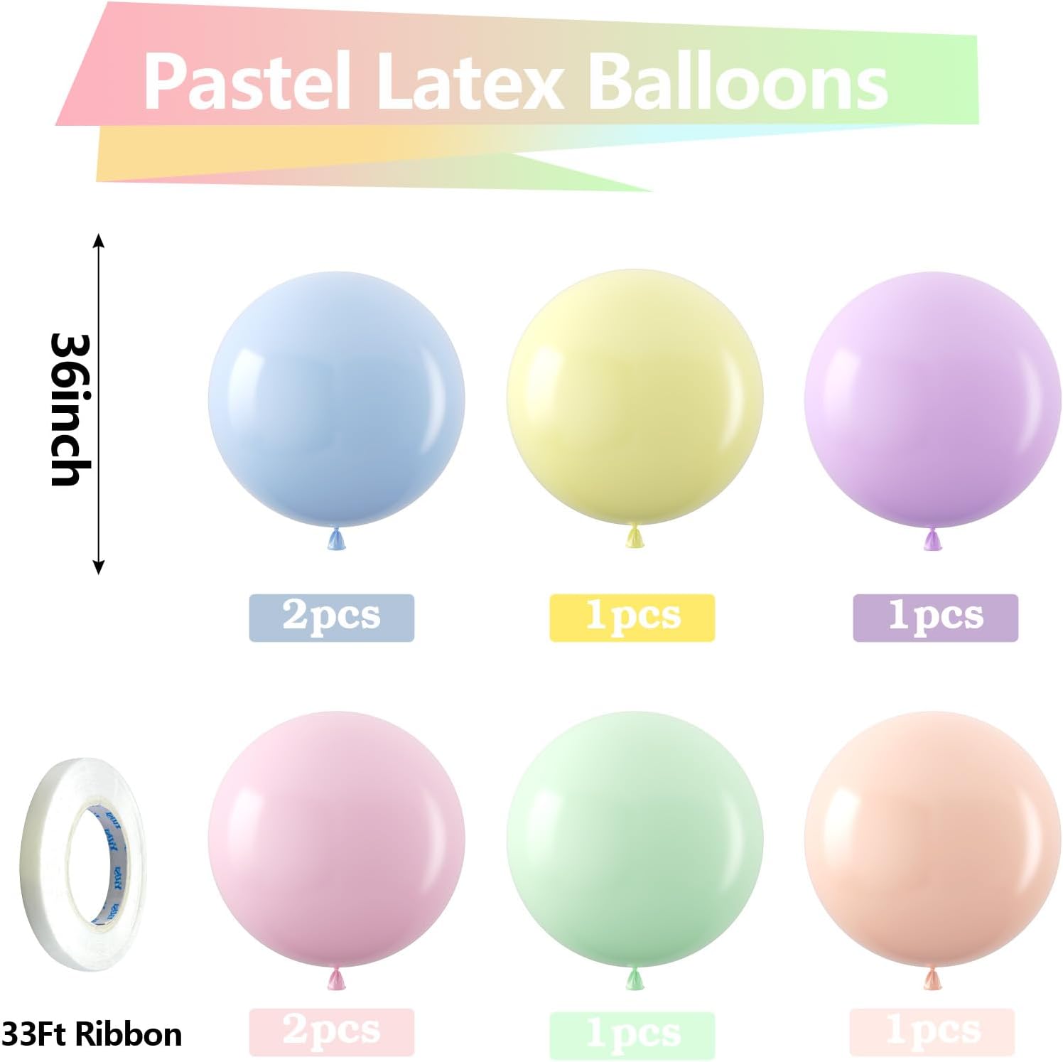 - 【Set Includes】- Each sets contains 8pcs 36 inch large pastel color balloons and 1pcs white ribbon (33 feet total). The right amount quantity and most suitable color for each party decoration.