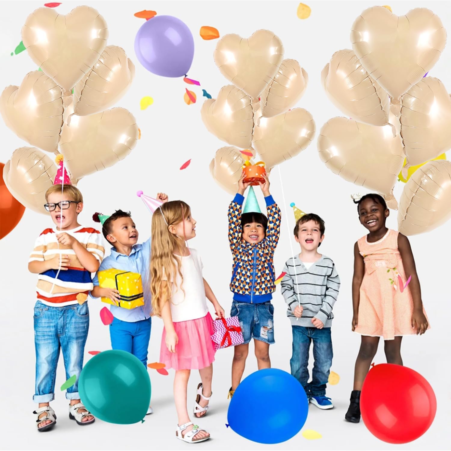 TONIFUL 30Pcs 18 Inch Light Brown Heart Balloons Heart Shape Foil Mylar Balloons Decoration for Birthday Valentine's Day Wedding Bridal Shower Anniversary Engagement Party Supplies