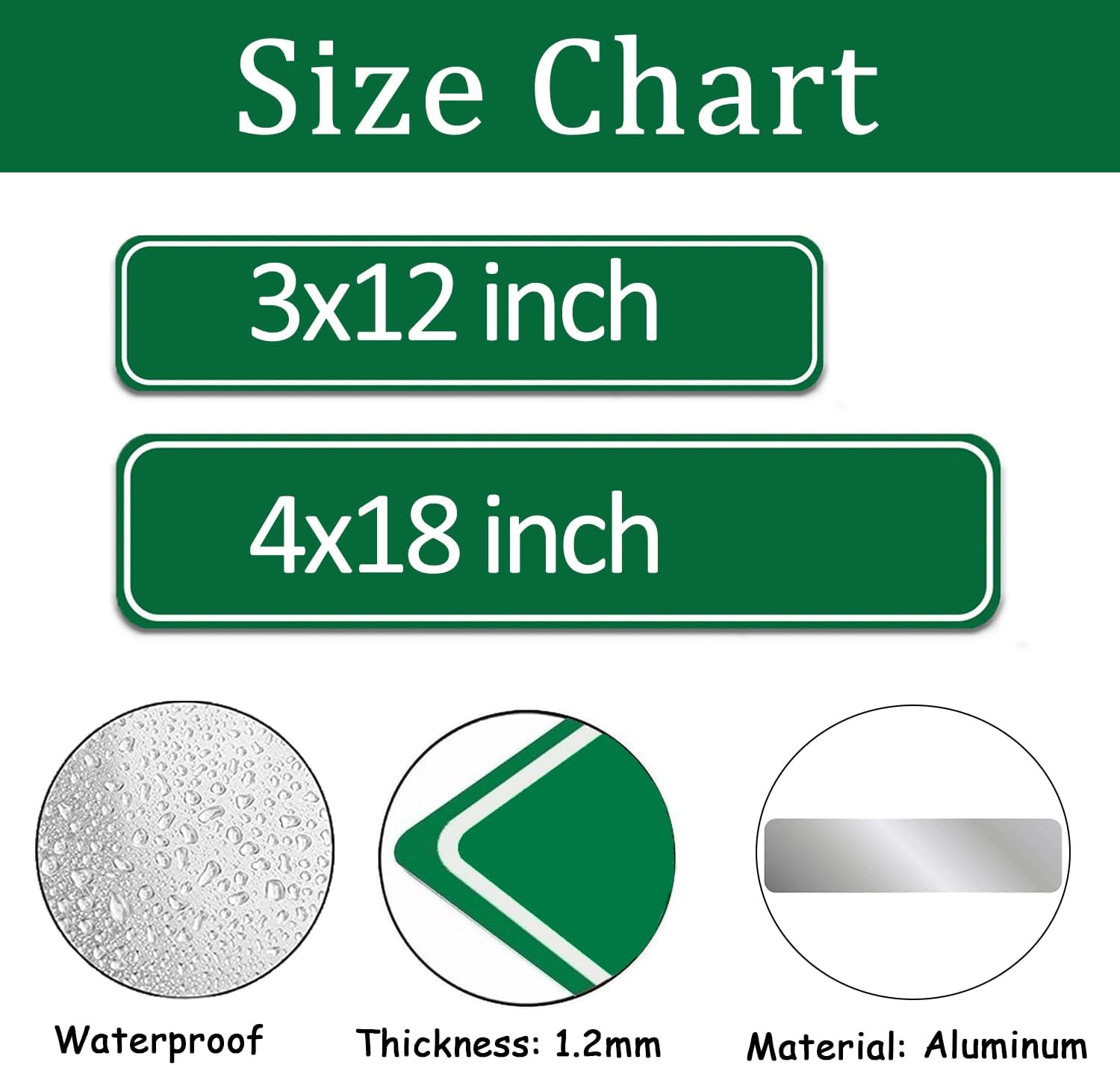 - ใ๐๐๐๐ ๐๐๐ ๐๐๐๐ใDimensions of the metal signs for outside are 3x12inch, 4x18inch, 10x14inch, 12c18inch, Personalized signs have rounded corners and burr-free corners for safe handling