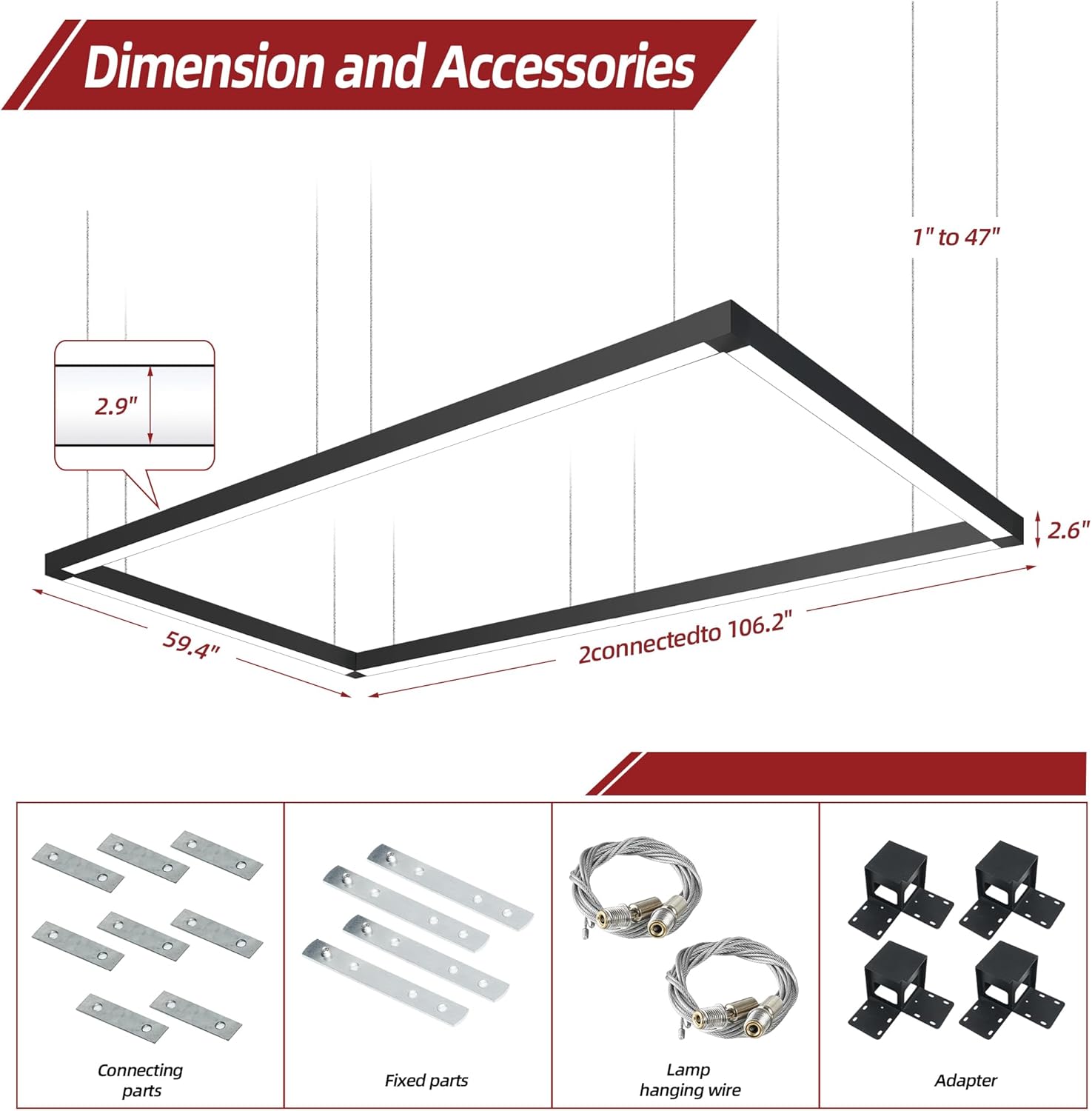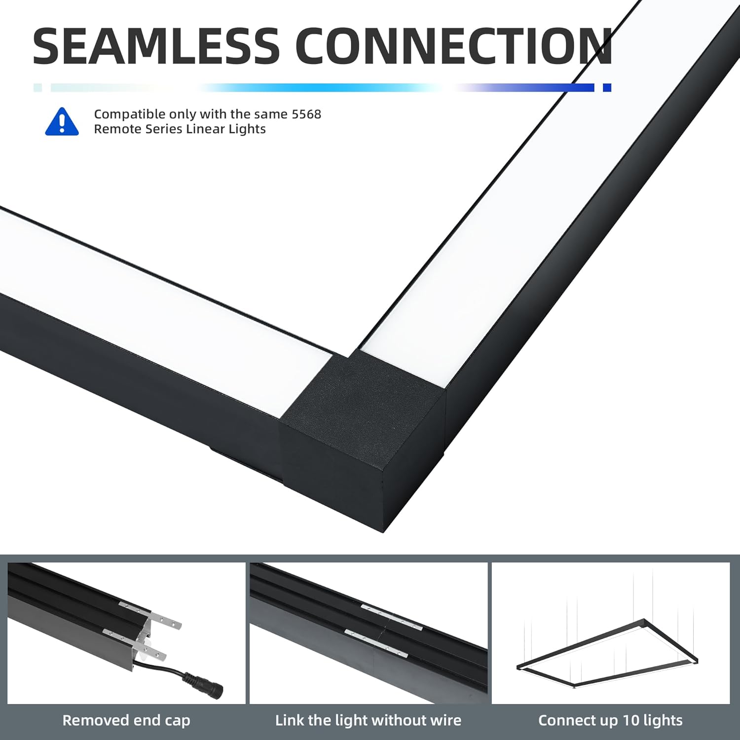8FT x 4FT LED Linear Light Rectangular Set with Remote Control, 50W Seamless Connection, 3000K to 6000K Color Changing, Commercial Hanging LED Shop Light Fixtures for Office Work Shop Garages