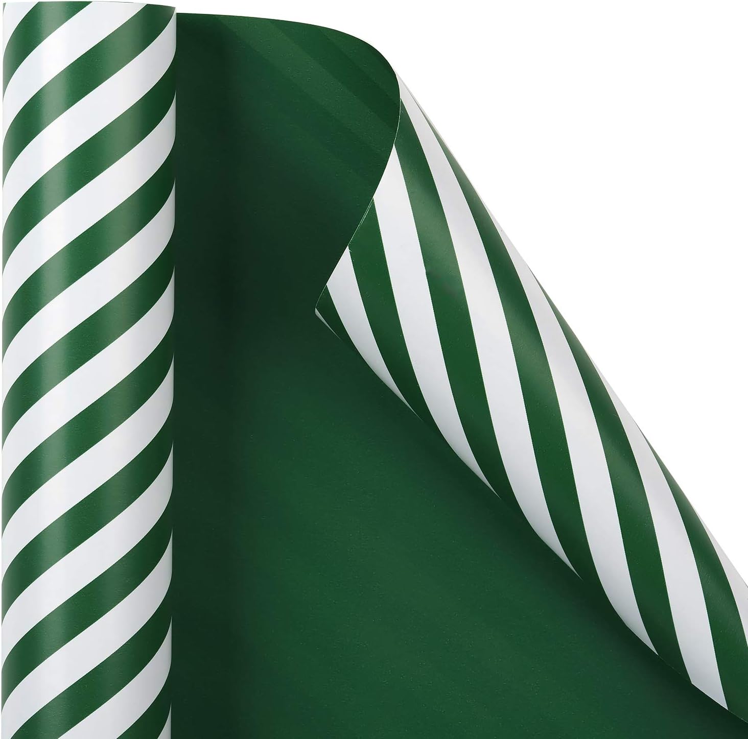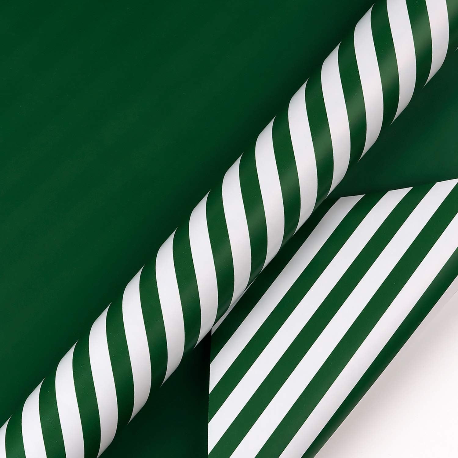 - REVERSIBLE: A solid dark green side and a dark green/white stripe side. Two different classic designs make beautiful and varied gift presentations easy.