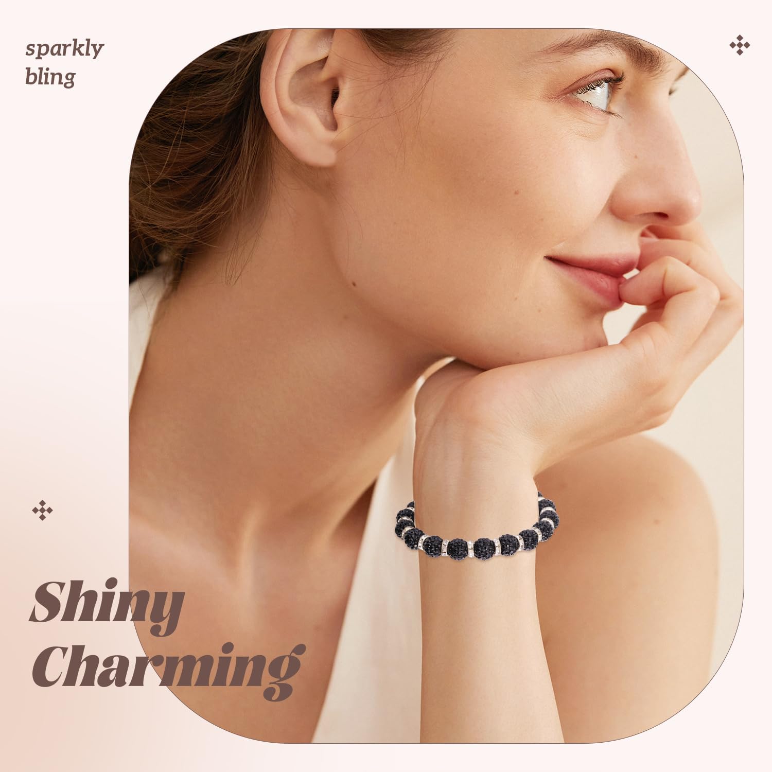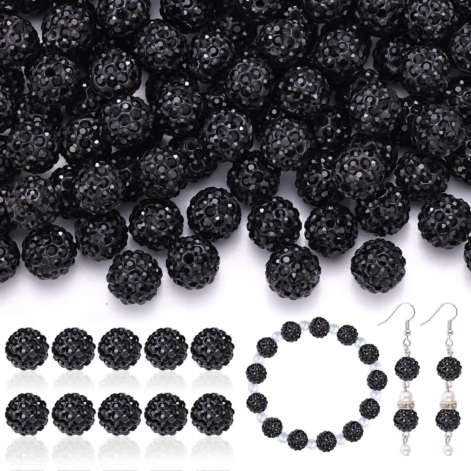 105pcs 10mm Rhinestone Beads for Jewelry Making, Black Shiny Round Disco Ball Beads Bulk, Sparkle Crystal Clay Christmas for Bracelet Baseball Necklace Earring Crafting and DIY