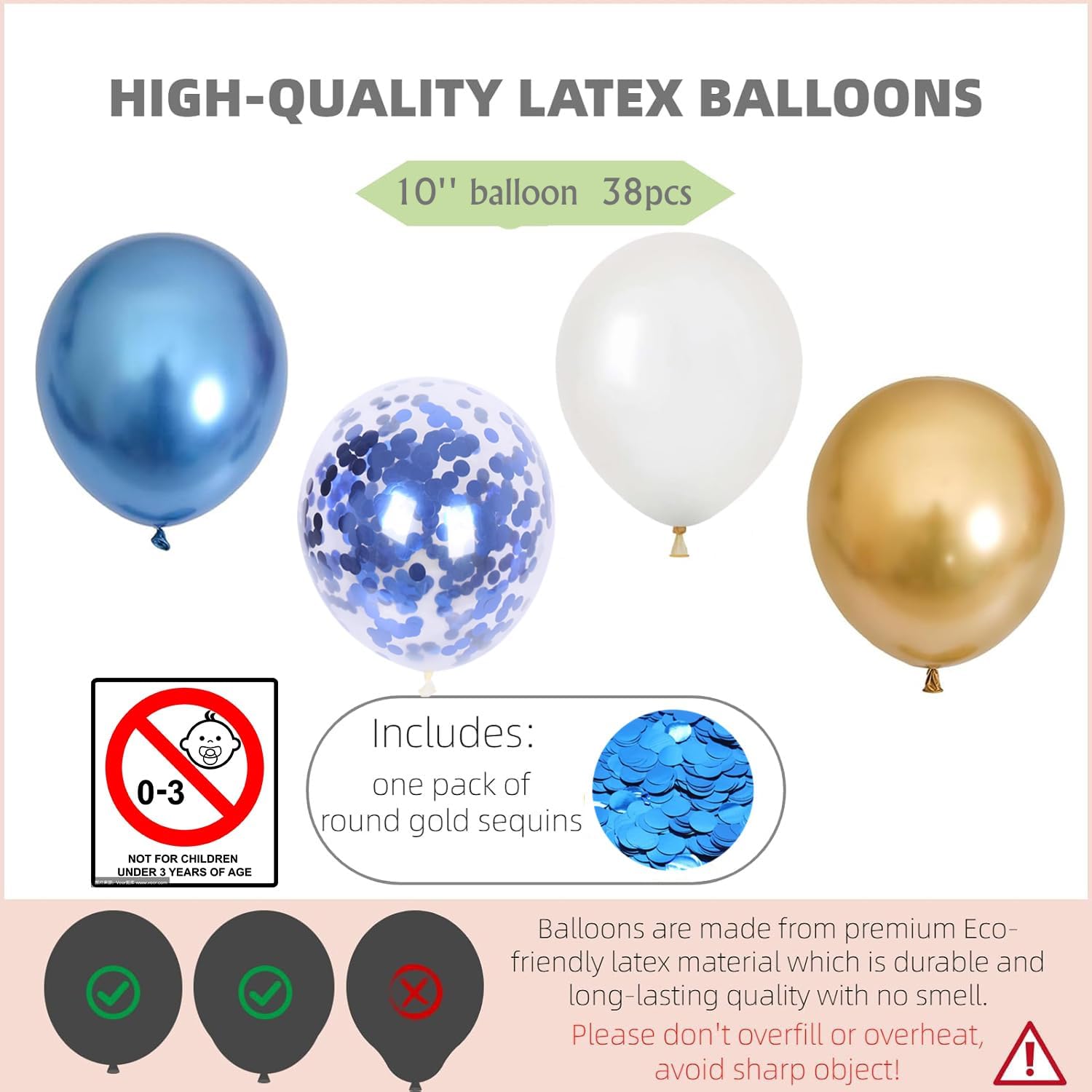 Balloon Column Kit Set of 2 With Confetti Balloons Included - with Base, and Pole,Balloon Tower Backdrop Decoration for Wedding, Baby Shower, Birthday Party, Bridal Shower(Metallic Blue Gold)