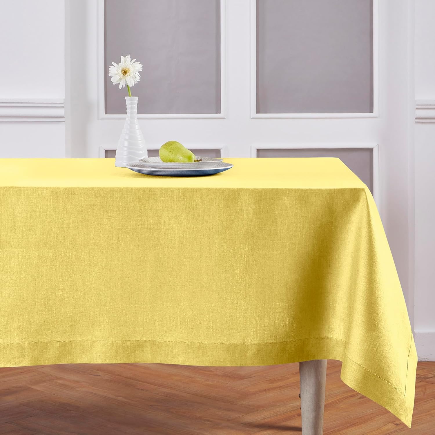 - 𝗖𝗼𝗺𝗽𝗼𝘀𝗶𝘁𝗶𝗼𝗻 𝗮𝗻𝗱 𝗖𝗿𝗮𝗳𝘁𝘀𝗺𝗮𝗻𝘀𝗵𝗶𝗽 : 100% Pure European Flax Linen Sunshine Yellow Thanksgiving Tablecloth - 𝗙𝗲𝘁𝗲 | Handcrafted By Skilled Artisans.