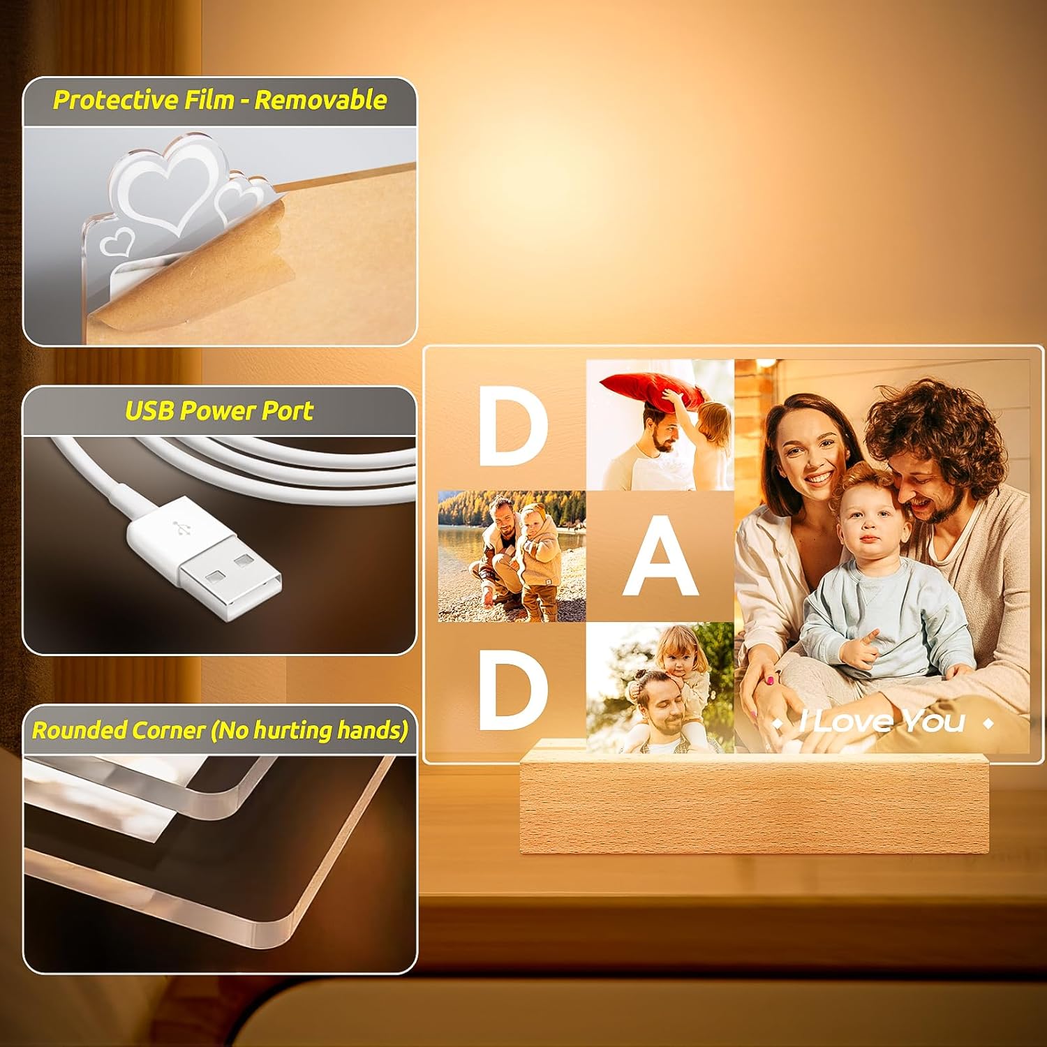 - Make You Brighter: Custom acrylic frame bases are available in three different colors. According to different occasions, the atmosphere can be adjusted to create the warmest home decoration.