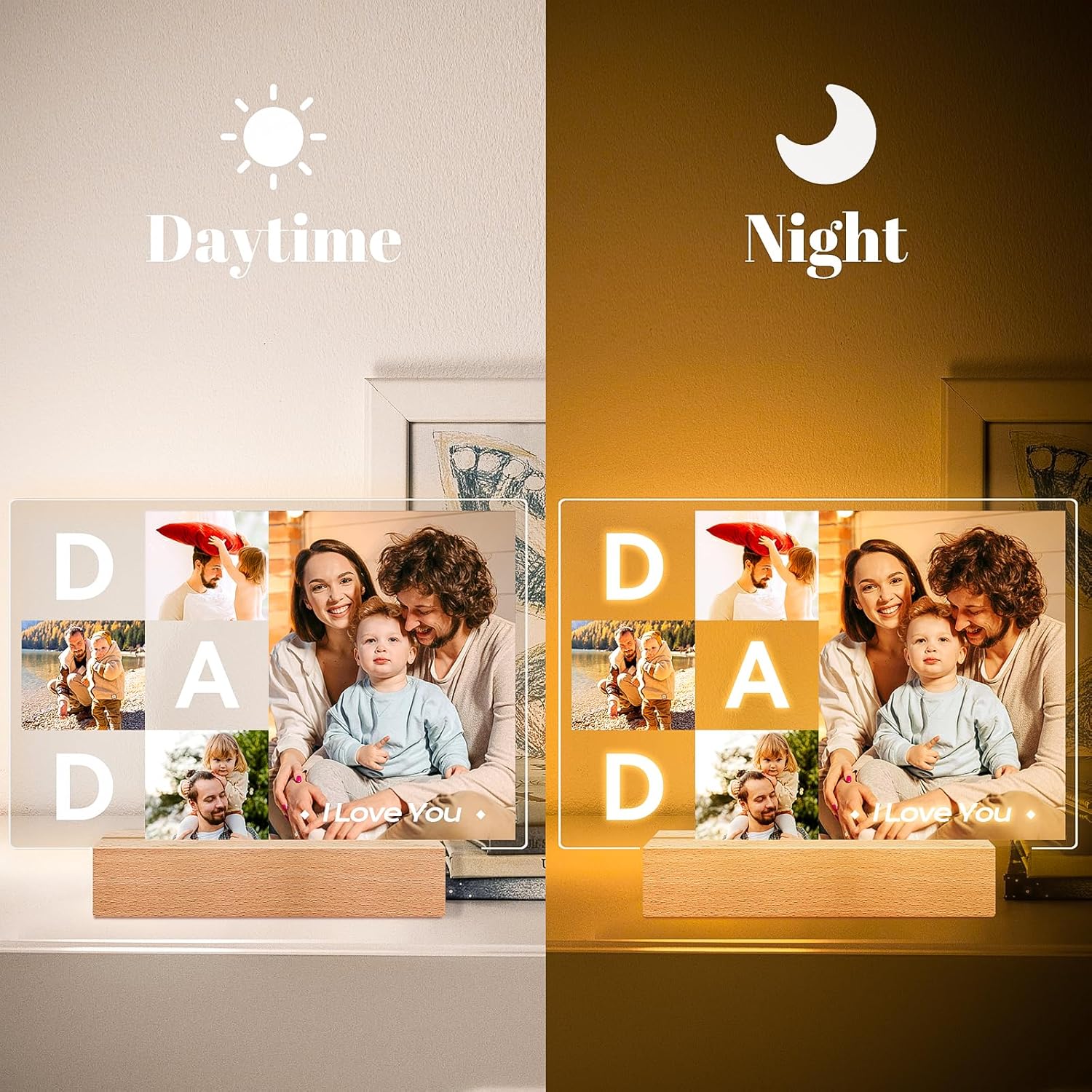 Personalized DAD Picture Frames, Customized Photo Frame with Night Light, Custom Picture Frames, Best Dad Ever Gifts, Personalized Christmas Birthday Gifts for Dad from Daughter Son Wife