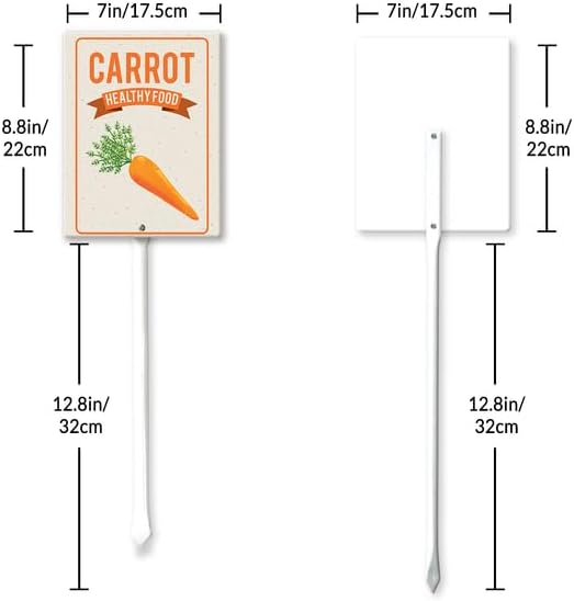 - [Extra large size] The plant tags total height 21.6", Width 7“ , Thickness is 0.07". The extra large size of the label makes the graphics are easy to read and attractive. Ther are thick, tall, and sturdy, and go into the ground easily