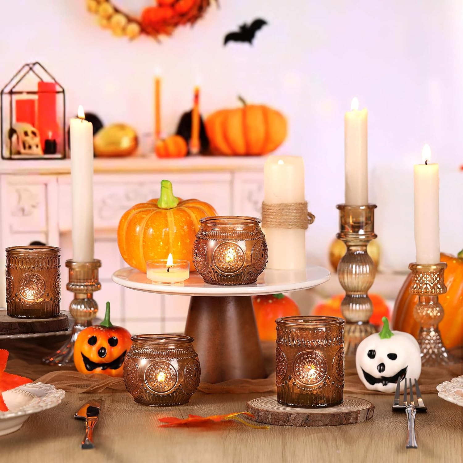 - ❤️❤️[ Votive Candle Holders Set ]❤️❤️: You will get 24 pack amber votive candle holders in your package, including 12 glass votives and 12 bowl glass votives.The dimensions are 2.1ʺD x 2.56ʺH and 2.1ʺD x 2.1ʺH approximately. These glass votive candle holders are the perfect complement to any dining table, which can be used with regular votive candles, tea light candles, flameless LED tea waxes, and edible butter candles, creating a warm and inviting ambiance that enhances the dining experience.