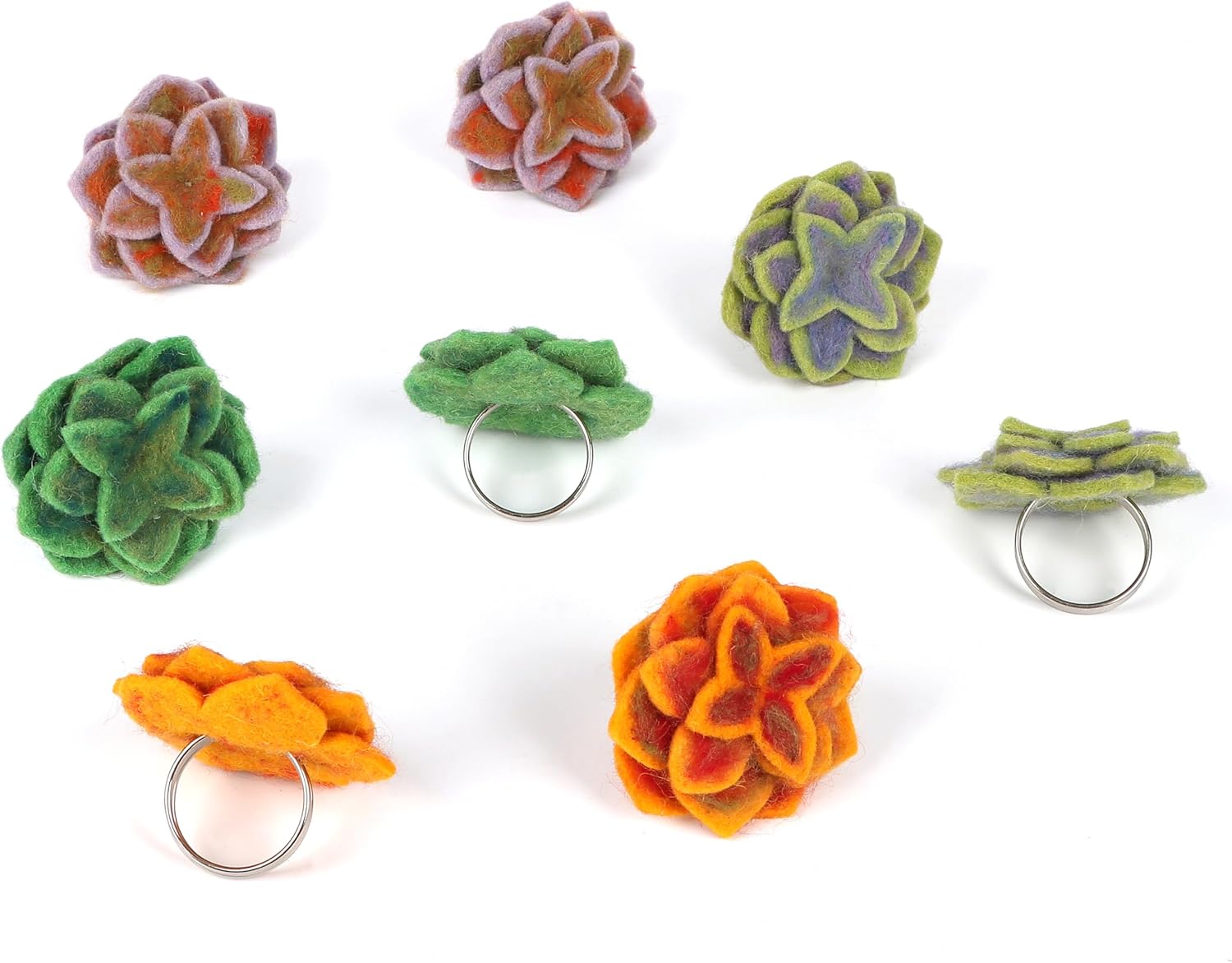 Wool Felt Napkin Ring Set of 8 - Elegant Flower Spring & Farmhouse Table Décor with Silver Electroplated Metal Alloy Base - Perfect for Banquet Table Decor & Daily Use (Multi) - CLEENTABLE