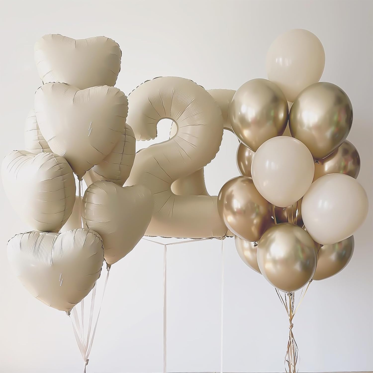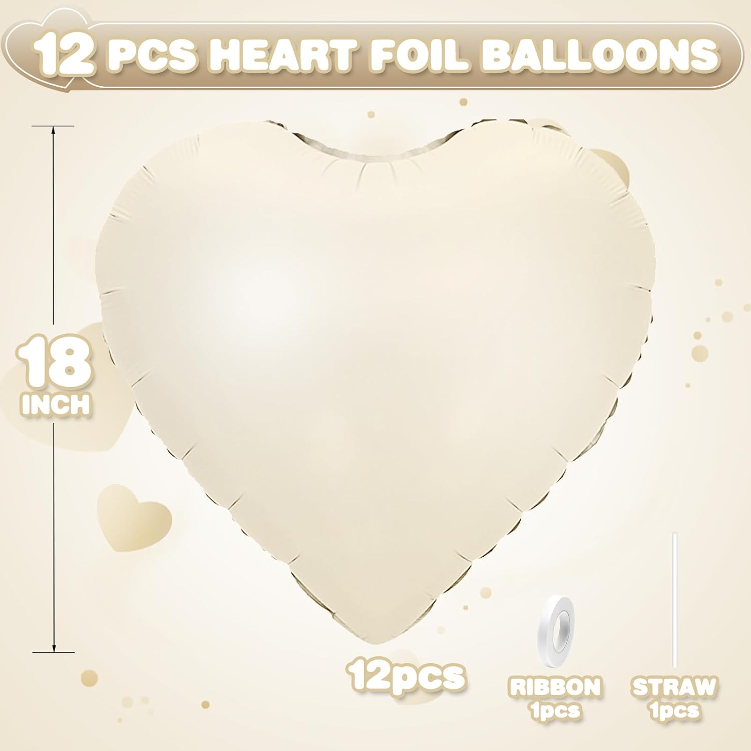 Cream White Heart Balloons,12Pcs Sand White Heart Shaped Foil Balloons,18Inch Beige Helium Polyester Film Balloon for Baby Shower Birthday Anniversary Wedding Party Decorations
