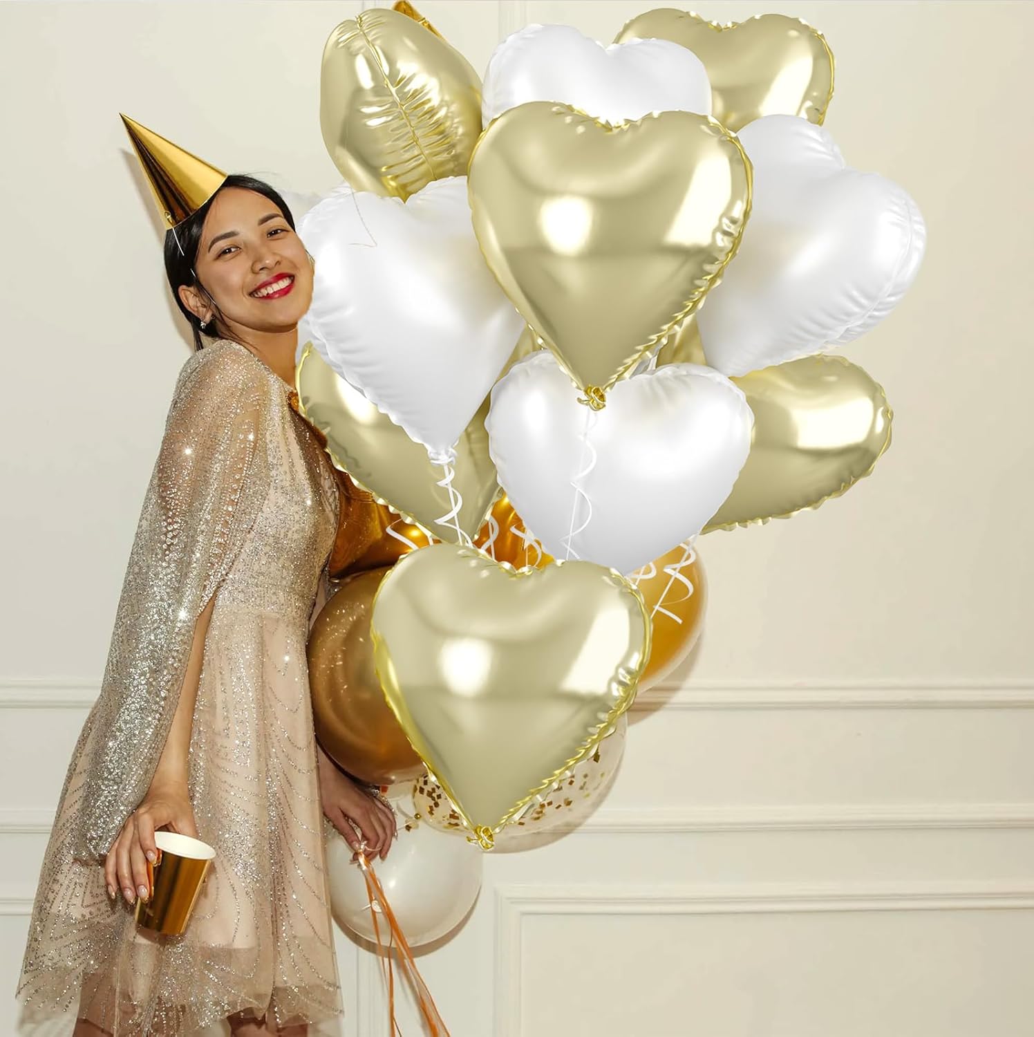 - Versatile Decoration: Our white and gold heart valentine balloons are perfect for a wide range of celebrations, including boy's and girl's birthday parties, baby showers, Valentine's Day decorations, wedding parties, bridal showers, princess parties, anniversaries, and more. They are ideal for balloon bouquets, home and table decor, wedding aisle decoration, photo backgrounds, party supplies, and other events.