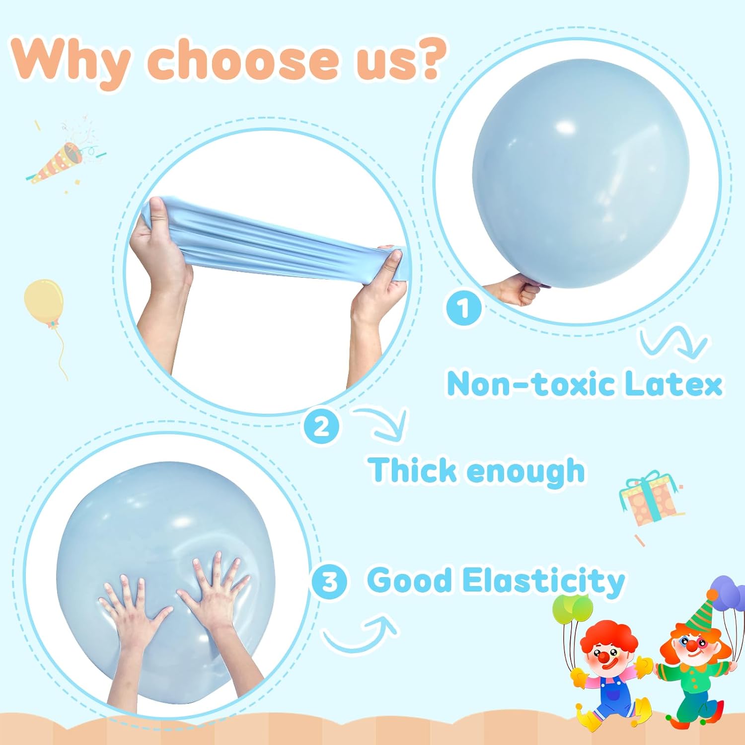 - 【How to use】Pastel Blue extra large balloons can be filled with air or helium. When the balloons is filled with more than 90% helium and the air vent is sealed, the balloon can float in the air for more than 3 days. Inflate recommended by air pump or helium pump .Matching with other balloons is also a good idea for your balloon party decoration.