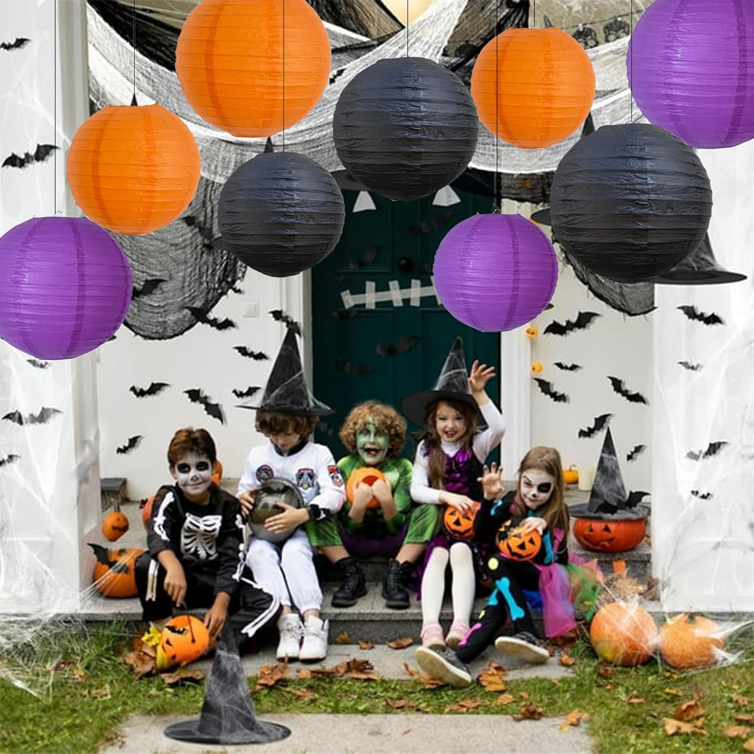 BEISHIDA 12Pcs Orange Purple Black Paper Lanterns Decorative Chinese/Japanese Hanging Round Paper Lanterns Lamp for Halloween,Birthday, Wedding, Christmas, Bridal,Home Decor, Party Decoration