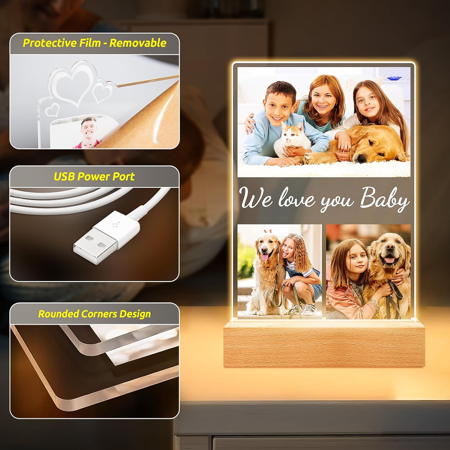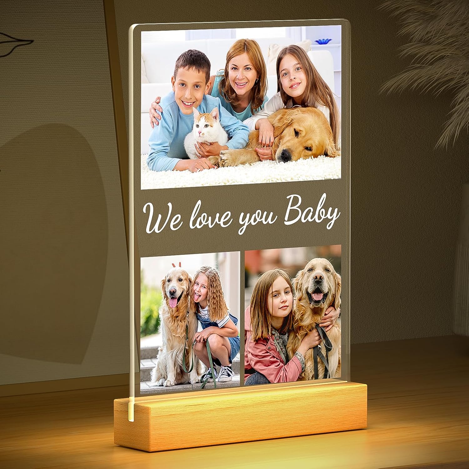 Custom Collage Picture Frames with Photos, Personalized Photo Frame with Night Light, Customized Birthday Photo Gifts for Baby Kids Girls Boys Pet Friends Family
