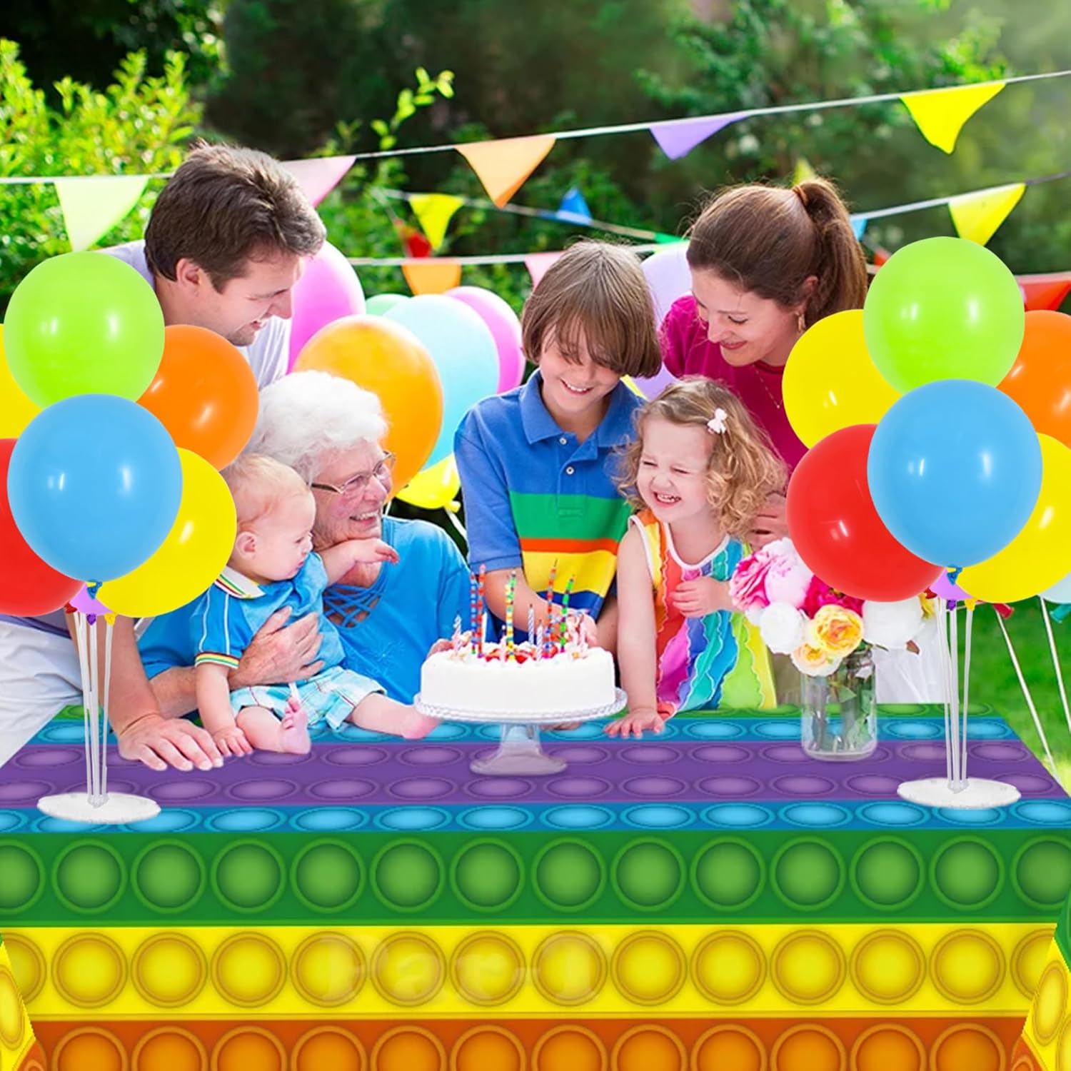 - Package Includes: The balloon stand kit includes 4 reusable balloon centerpiece table decorations and 12 inch 32pcs Latex Balloons (6 red balloons,6 orange balloons,6 yellow balloons,6 light green balloons,6 light blue balloons,6 macaron purple balloons),glue point dots,balloon pump,balloon clips,and tie tool.You don’t need to waste money to buy balloons