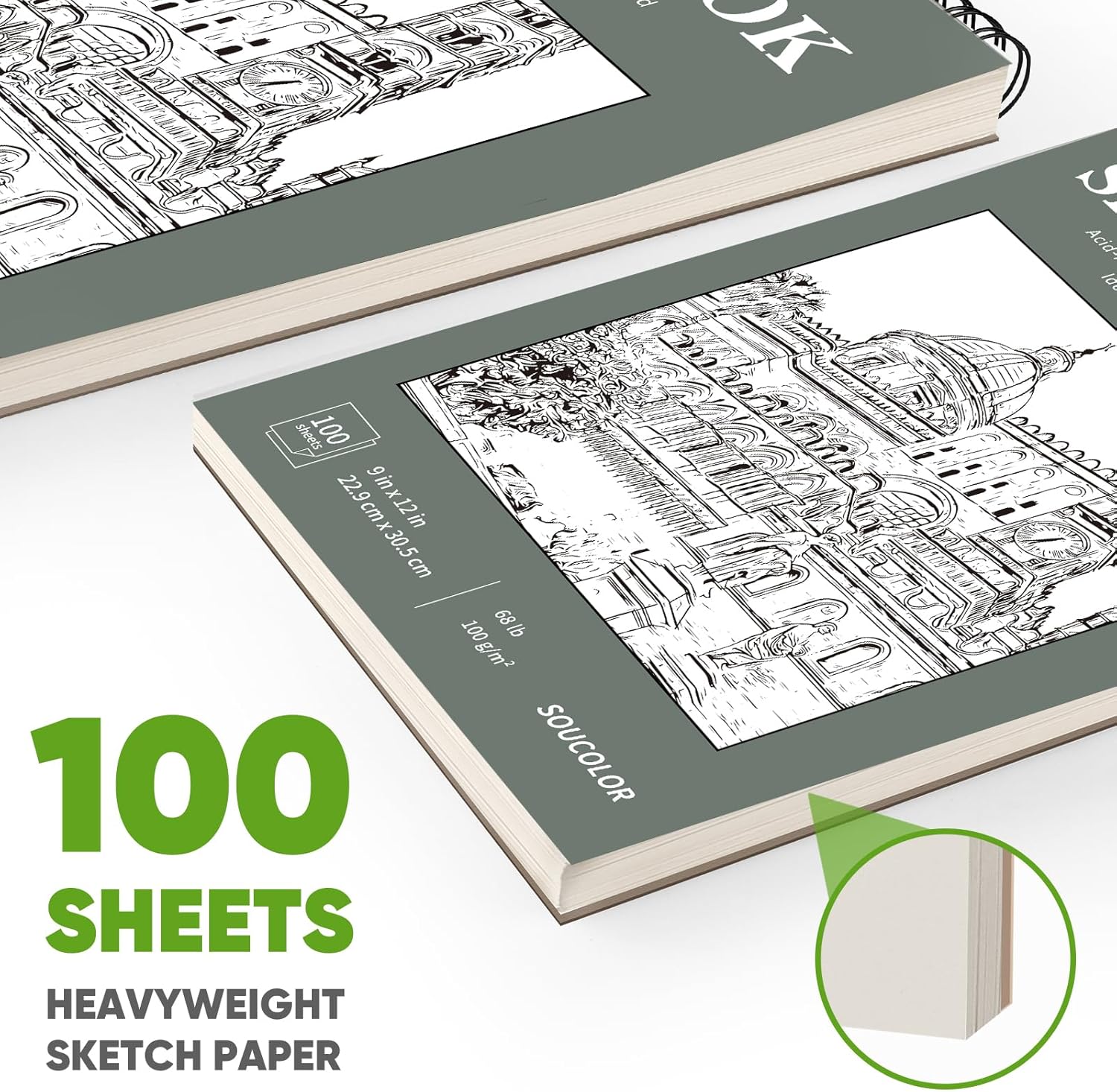 - 【Premium Paper Quality】Professional Sketch Book Drawing Pads. Great size 9 x 12 inches for all levels of artists. 100 sheets in each sketchpad, total of 100 premium sketch pad paper sheets at the affordable price. Nice texture for drawing, sketching. Excellent art paper book gift for who enjoys sketching, drawing, illustrating, painting, writing and creating art. Great sketchbook for using with graphite pencils, colored pencils, charcoal, pens, soft oil pastel, sketching sticks and more.