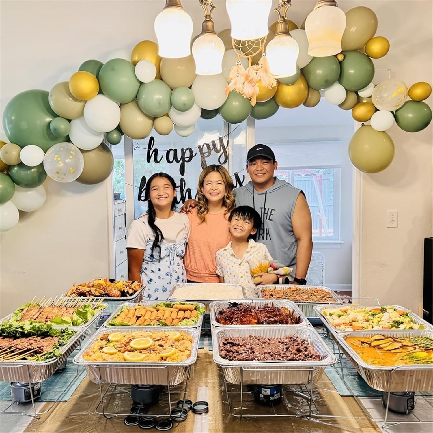 - 💚 Sage Green Balloons Set: This is a beautiful bright balloon, which contains balloons of different colors. Include 12 inch sage green balloon(20pcs), olive green balloon(15pcs), macaron green balloon(10pcs), metallic gold balloon(10pcs), gold confetti balloon(5pcs), 2 rolls of ribbons. You can use these different shades of green balloon kits, DIY balloon combinations to create your birthday party.
