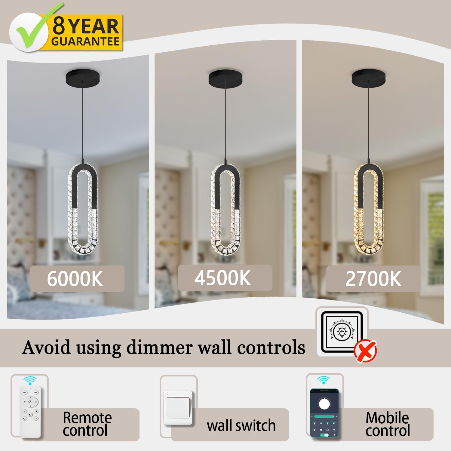 - 【Pendant Light Size】: Made of black metal and crystal, the pendant light features a black circular ceiling pan with a diameter of 5.9 inches. The crystal lamp shade has a diameter of 6.7 inches,H 21 inch. The pendant light has an adjustable cord and a total length of 59 inches, allowing you to choose the suitable height for your space.