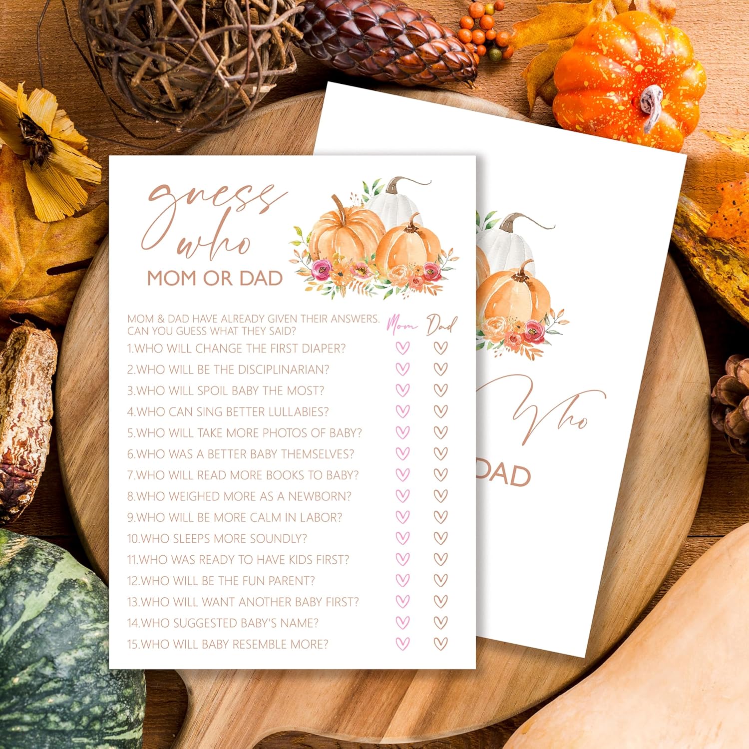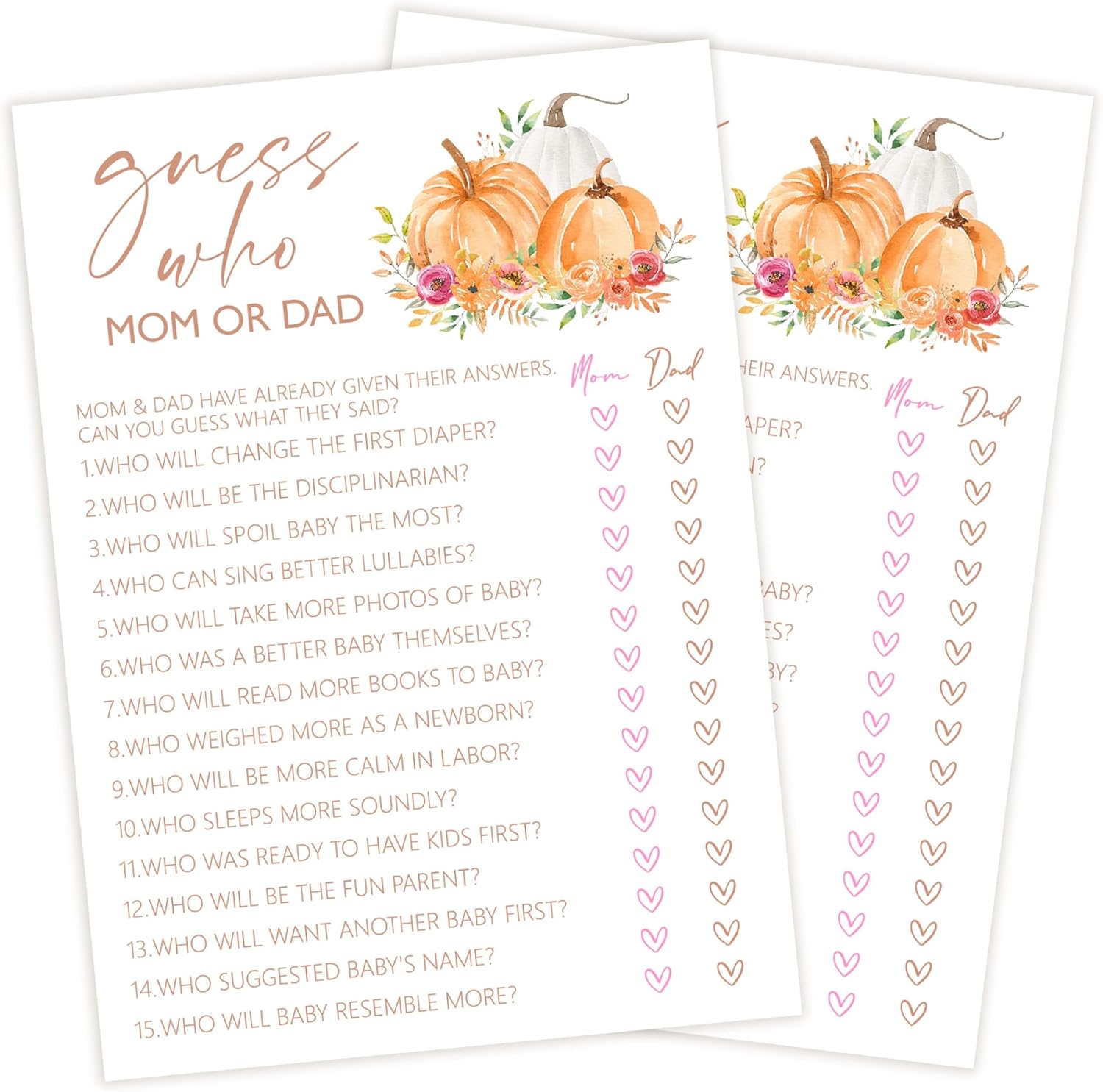 Baby Shower Games, Thanksgiving Guess Who Mom or Dad Game Cards, 25 Sets Baby Gender Reveal Party Decorations Supplies Favors - E01