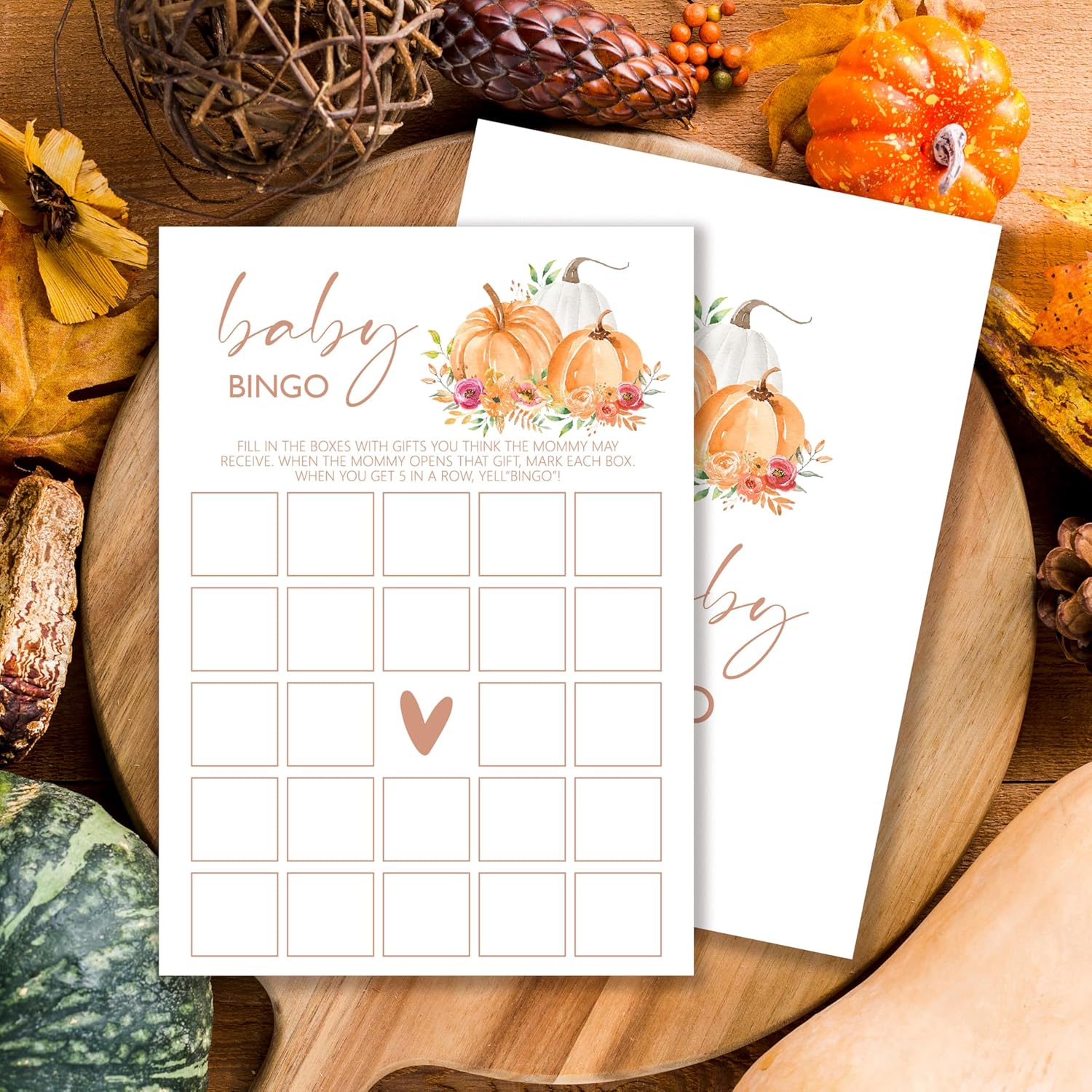 - Charming Design: These pumpkin theme baby shower game cards are a nice addition to your gender reveal party and are suitable for both adults and kids. You can coordinate them with other baby shower themed party supplies to create a complete baby shower atmosphere and creating lasting memories for both you and your guests. Your guests will love being invited to your party with these baby shower party games.