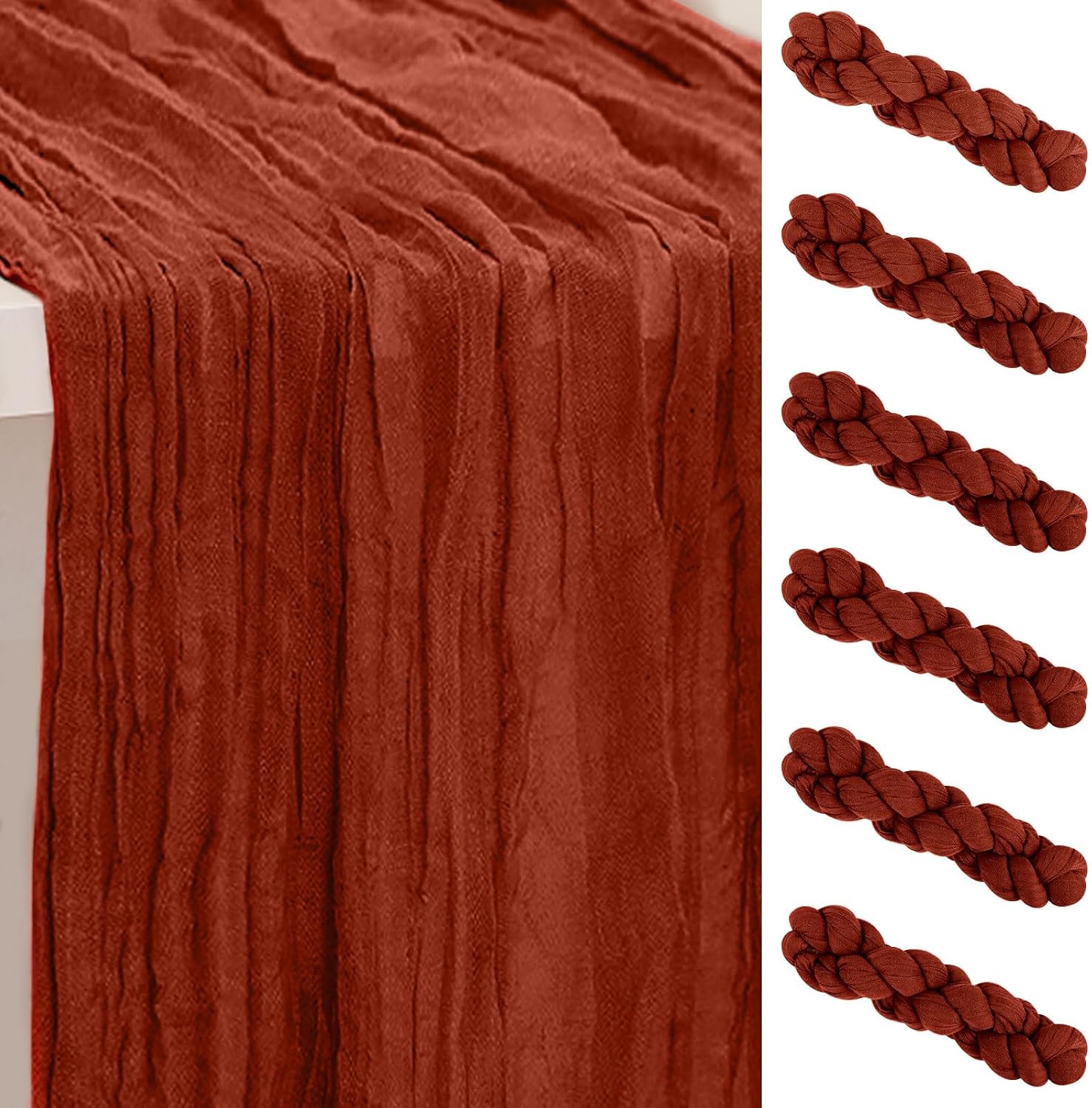 6 Pack Terracotta Cheesecloth Table Runner 35x120 Inch 10Ft Rustic Gauze Cheese Cloth Thanksgiving Table Runner Sheer Cheesecloth Table Runners for Wedding Party Bridal Shower Decoration