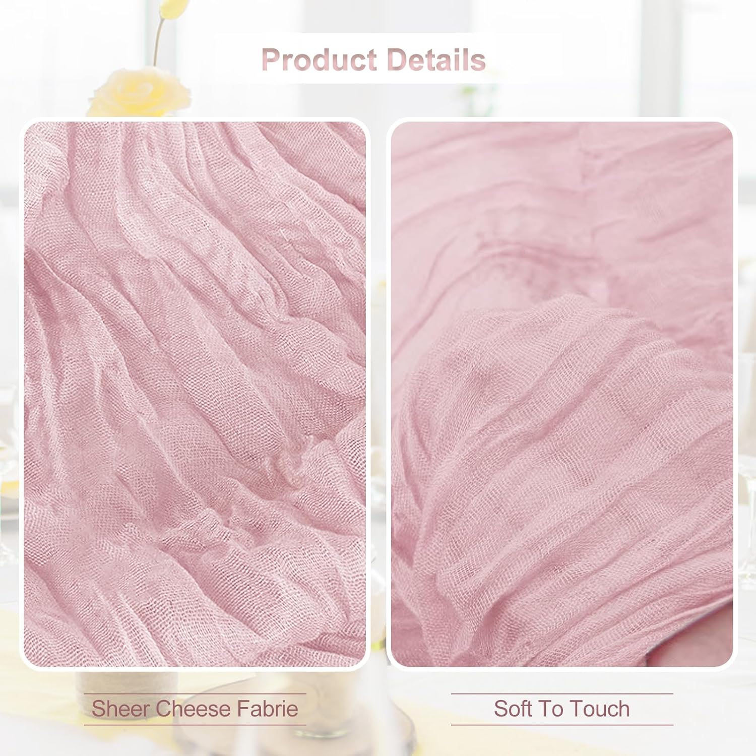 - Premium Materials: Our table runners are crafted from high-quality cheesecloth and gauze. The dusty pink cheesecloth table runner has good softness and breathability, while the gauze table runner offers a delicate and elegant texture. These materials are carefully selected to ensure durability and a luxurious feel, making your table look and feel extraordinary.
