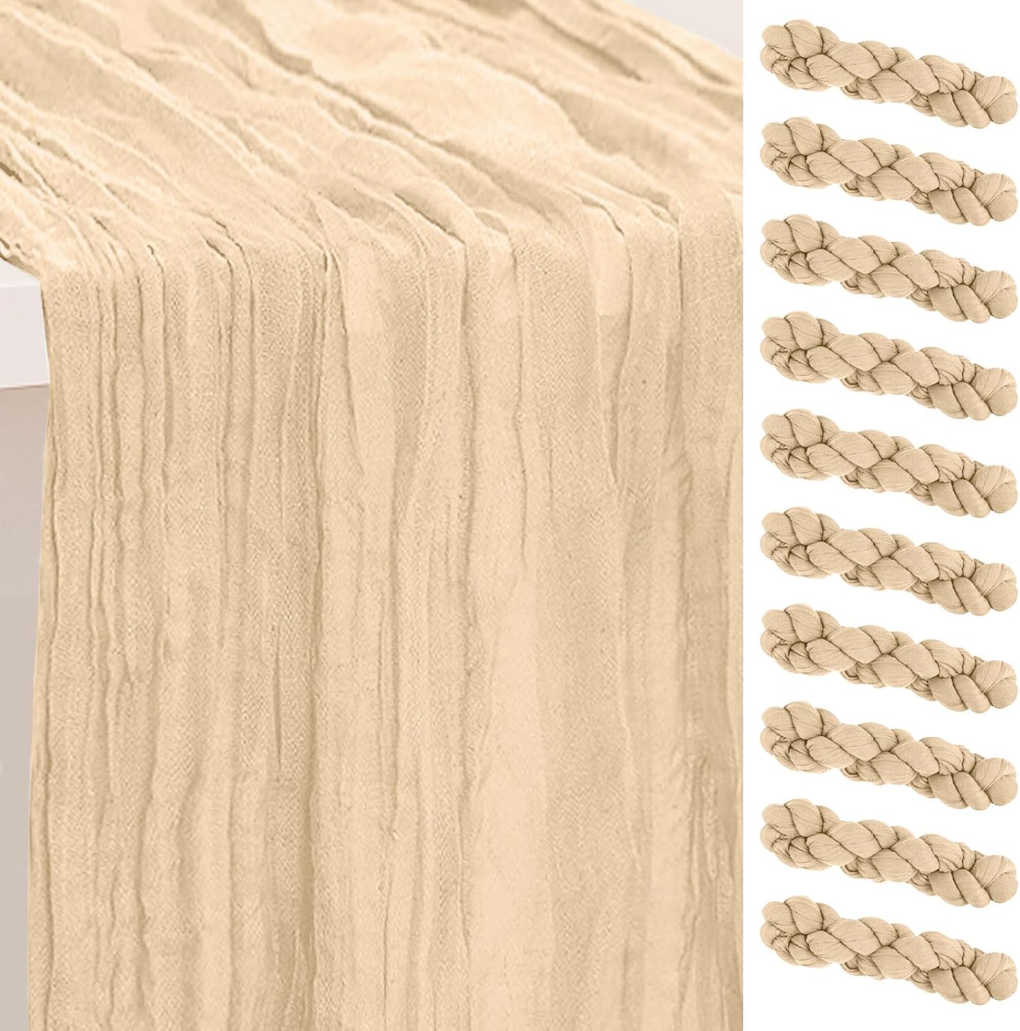 10 Pack Nude Cheesecloth Table Runner 35x120 Inch 10Ft Rustic Gauze Cheese Cloth Table Runner Sheer Cheesecloth Table Runners for Wedding Party Bridal Shower Decoration