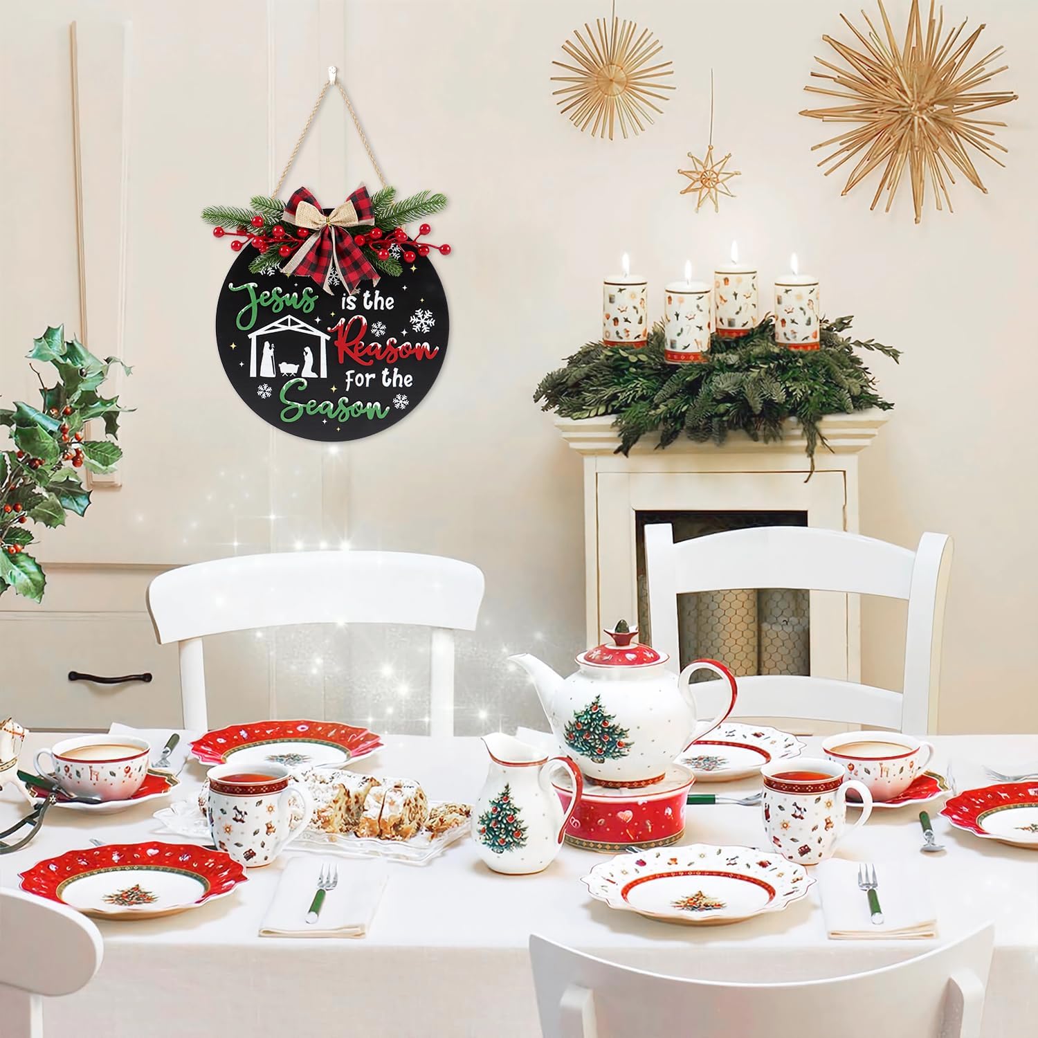 - Wooden Christmas Wreath with Exquisite 3D Design---Our rustic Christmas door decor hanger is designed with a red plain bow, realistic leaves and berries. The words ‘Jesus’, ‘Reason’ and ‘Season’ are 3D with a thickness of 3mm. Unlike the ordinary wood sign, this has a multi-layered visual effect.