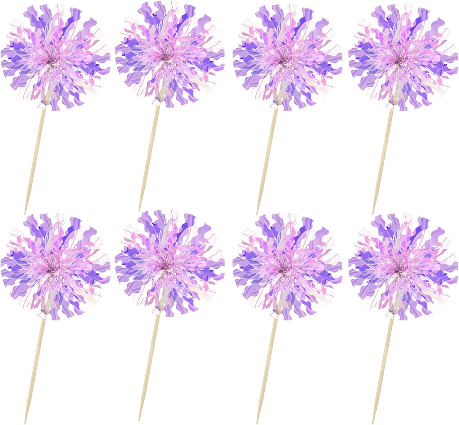 Ephlyn 30Pcs Foil Firework Cupcake Toppers Sparkle Tinsel Cupcake Picks Happy Birthday Cake Decorations Drink Stirrers Cocktail Food Fruit Toothpicks for Baby Shower Graduation Party Supplies Purple