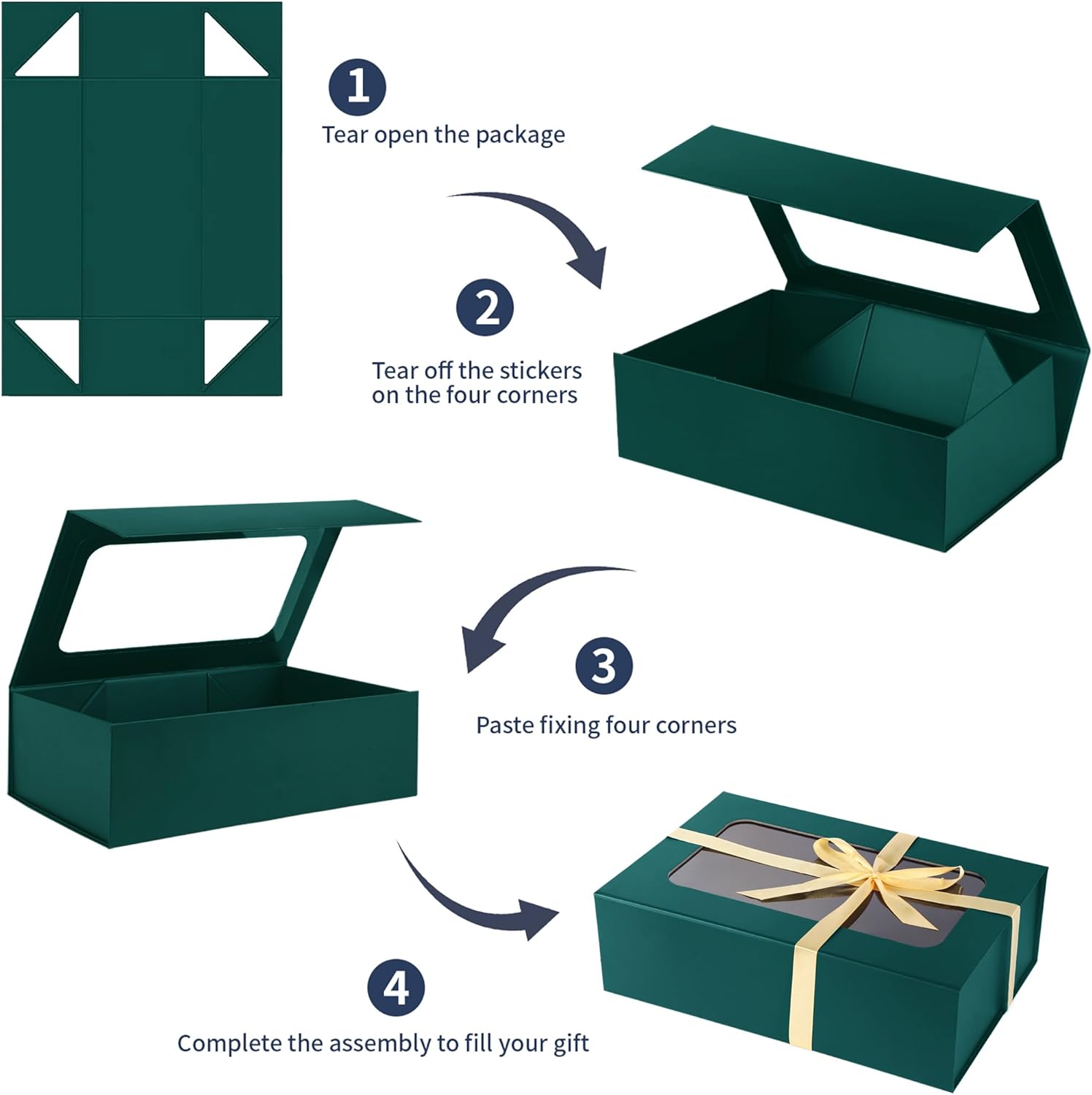 - 🎁GIFT BOX SIZE: Magnetic gift boxes,13.5x9x4.3 inches.Gift boxes are all flat transportation,Quick assembly, no extra tape required, easy to fold together in 2 steps, just peel off the triangle sticker, then assemble and glue the box. Save your valuable time and effort.