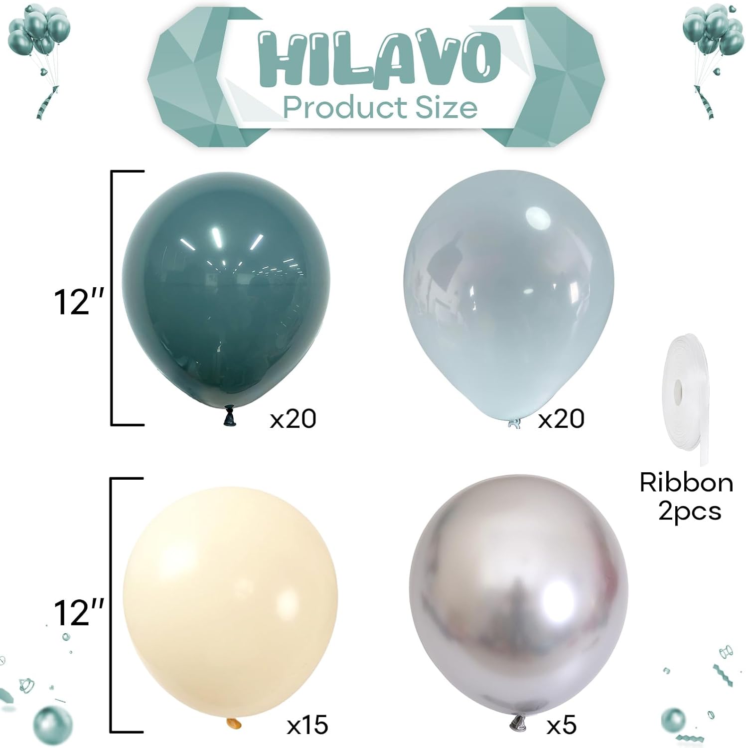 - 💙 Dusty Blue and Ivory White Balloons Set: This is a beautiful bright balloon, which contains balloons of different colors. Include 12 inch dusty blue balloon(20pcs), retro fog blue balloon(20pcs), ivory white balloon(15pcs), metallic silver balloon(5pcs), 2 rolls of ribbons. You can use these different shades of blue balloon kits, DIY balloon combinations to create your birthday party.