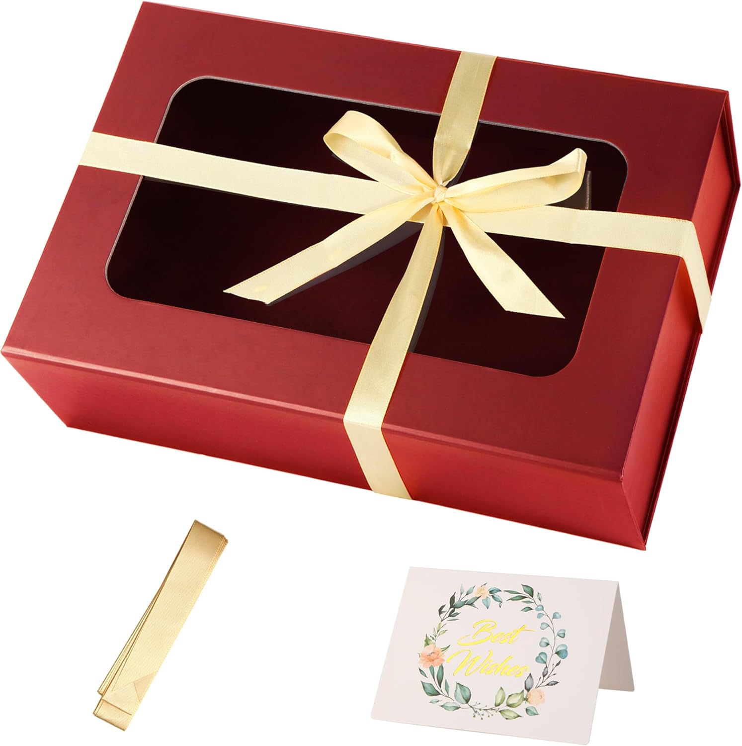 TIACABO Red Large Gift Box with Window, 13.5"x9"x4.3" Bridesmaid Boxe for Gifts Giving,Birthday Gift Boxes with Magnetic,Closure Lid Gifts Box for Presents,Cute Boxe,Luxury for Gift Packaging