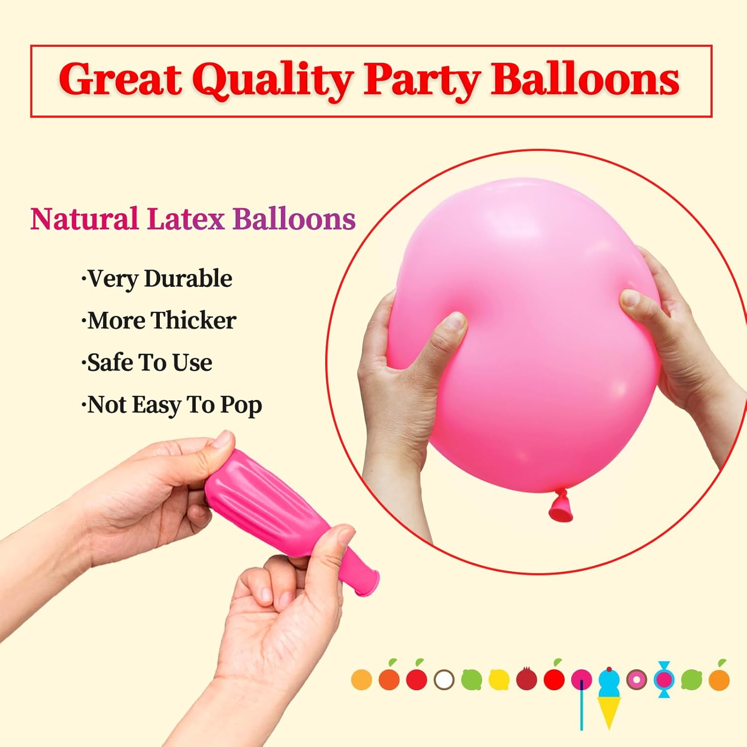- Pink 12 inch balloon is made of thickened latex, thicker than the normal 12inch balloons,which are durable and safe to be used. the color is bright pink, .these pink balloons can be used as balloons decorations for birthday party, and play around children.