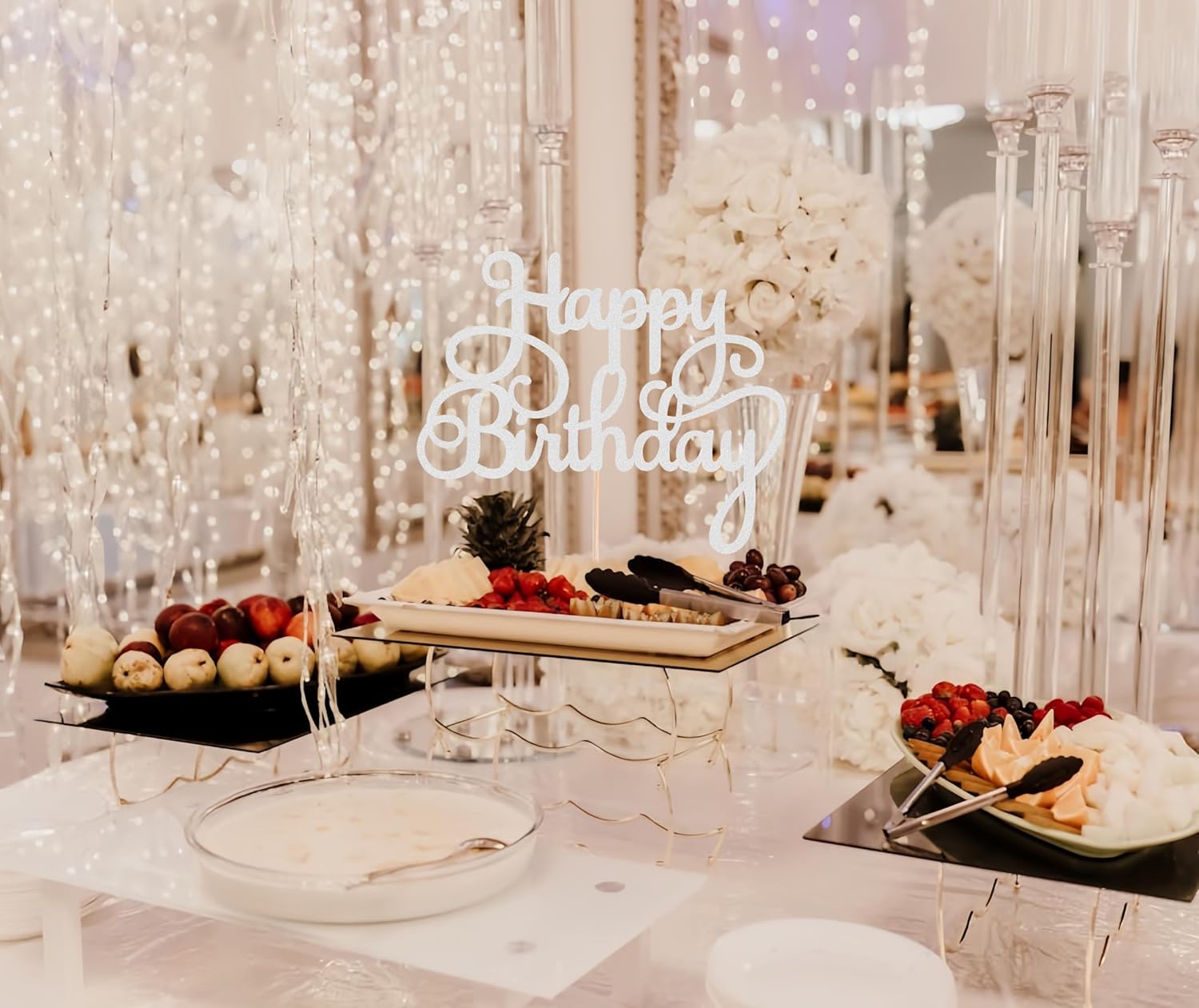 - HIGH QUALITY CARDSTOCK - Each happy birthday cake topper is made of silver 350GMS thick cardboard, which is sturdy and durable, effectively preventing damage during transportation. This happy birthday cake topper is a true silver flash that shines from every angle, providing a unique touch and illuminating the entire gathering venuedecor