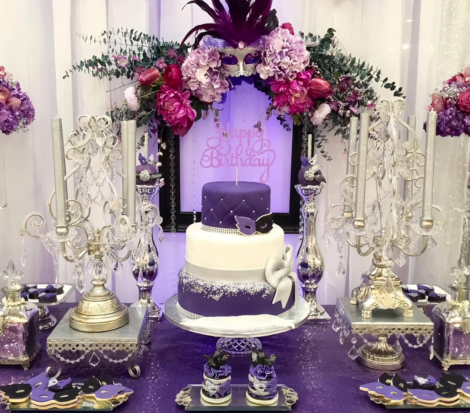 - HIGH QUALITY CARDSTOCK - Each happy birthday cake topper is made of purple 350GMS thick cardboard, which is sturdy and durable, effectively preventing damage during transportation. This happy birthday cake topper is a true purple flash that shines from every angle, providing a unique touch and illuminating the entire gathering venuedecor