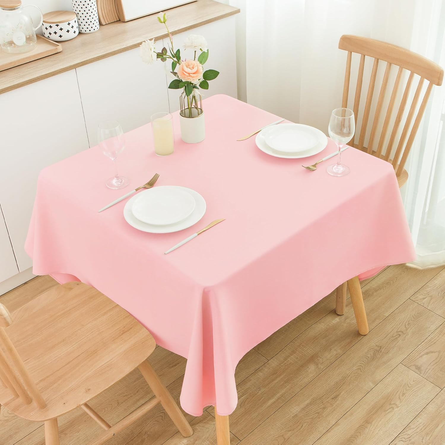 2 Pack Square Table Cloth 52X52 Inch Pink Tablecloth Washable Polyester Solid Dining Table Cover for Birthday Party Dinner Holiday Outdoor Indoor