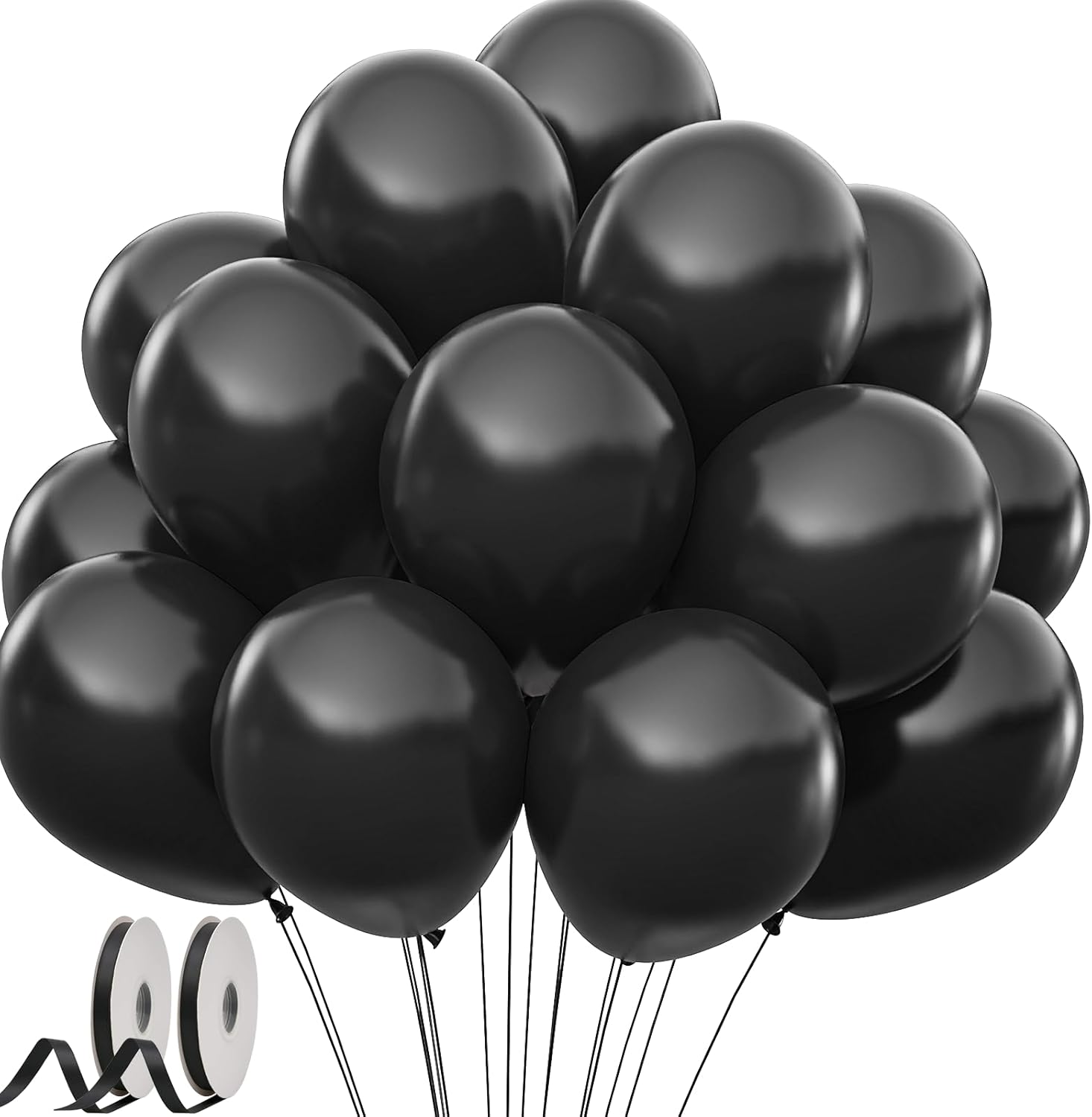 - 12 Inch Black Balloons: Includes 100 black balloons, with 2 rolls of balloon ribbons. These black halloween balloons weigh 2.8 grams each, enough quantity can meet your festival or party decoration needs. We use grade a materials and are confident in the quality of our halloween balloon decorations.