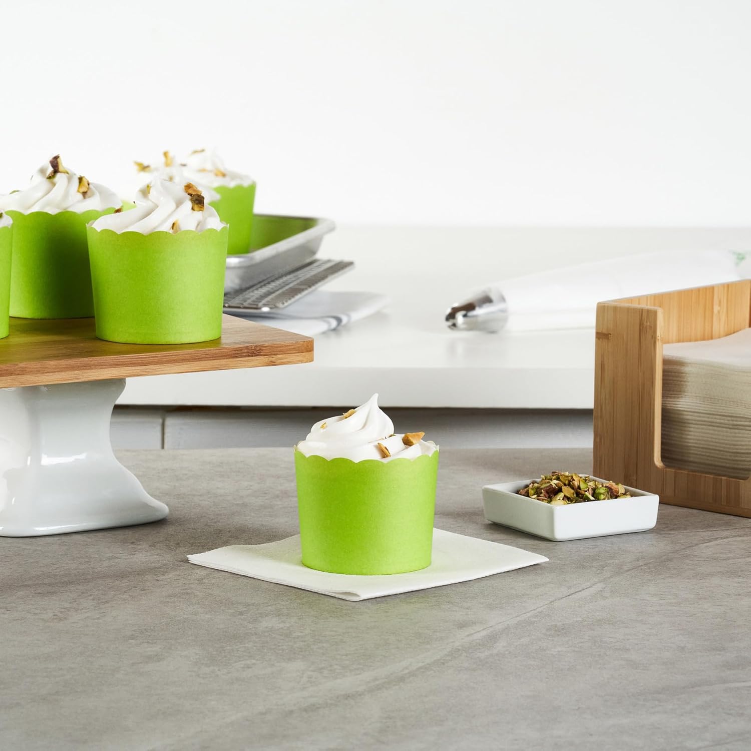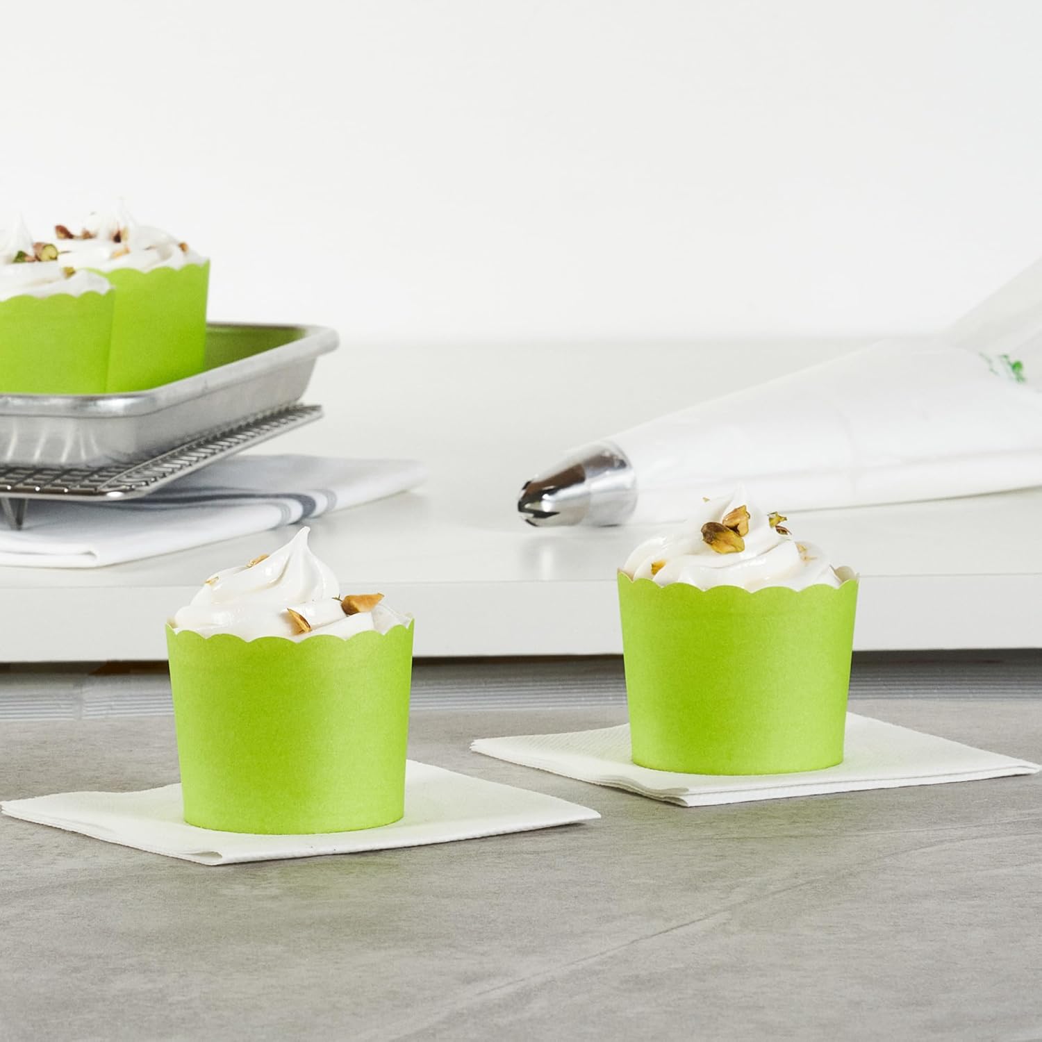 - SUSTAINABLE OPTION: Great for ecologically-conscious bakers! These disposable baking cups are made from sustainable paper material and the green finish blends in with any type of cupcake decoration.