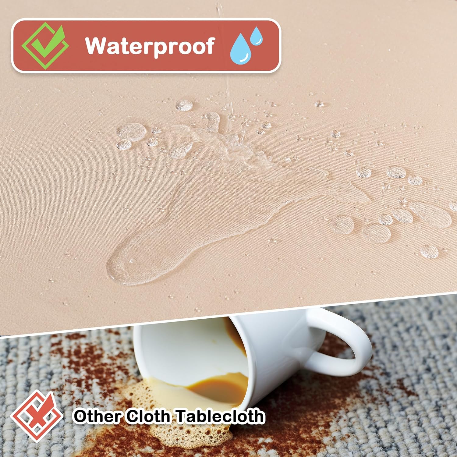 - Water Resitant: Our tablecloths are treated with an extra waterproof coating that not only makes them anti-splash and water-resistant. (Warm Tips: Water Resistant, Spills should be removed immediately)